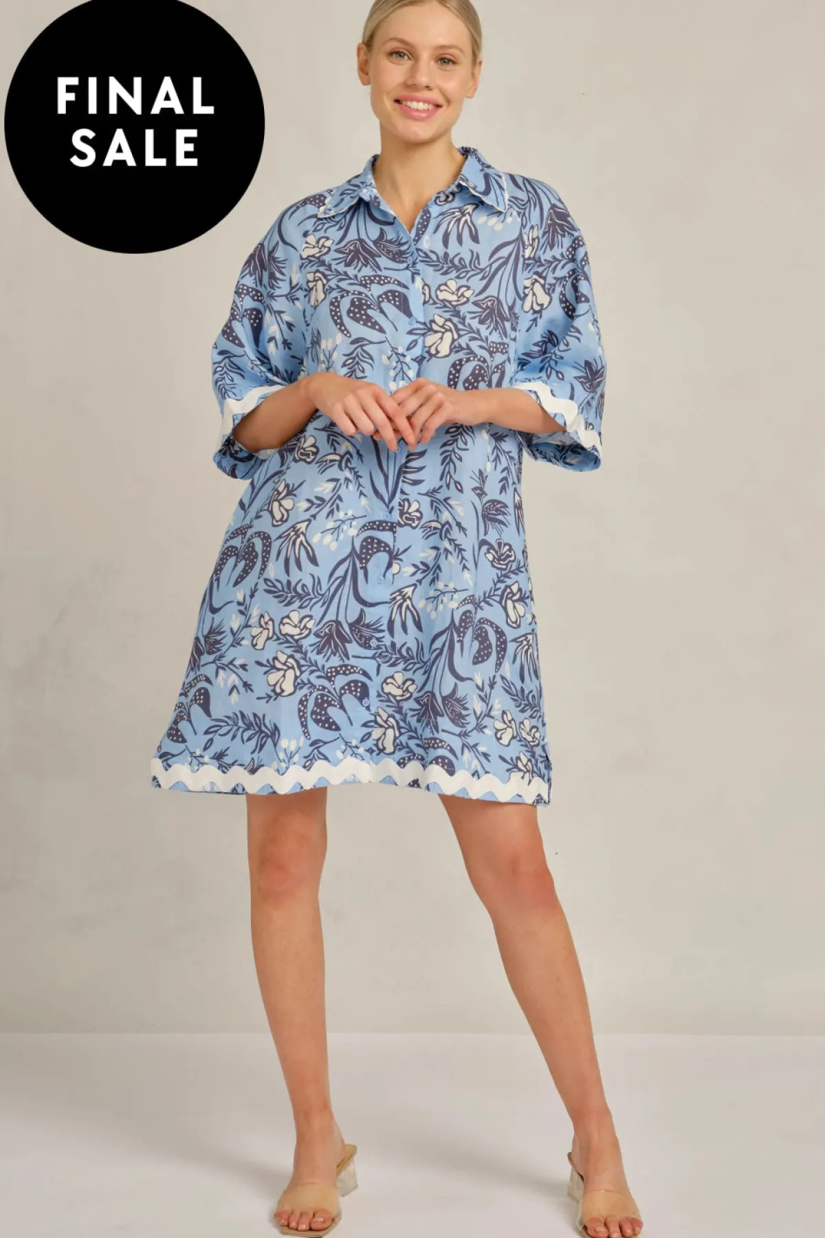 - Cornflower blue body with white Floral print and white ric-rac detailing