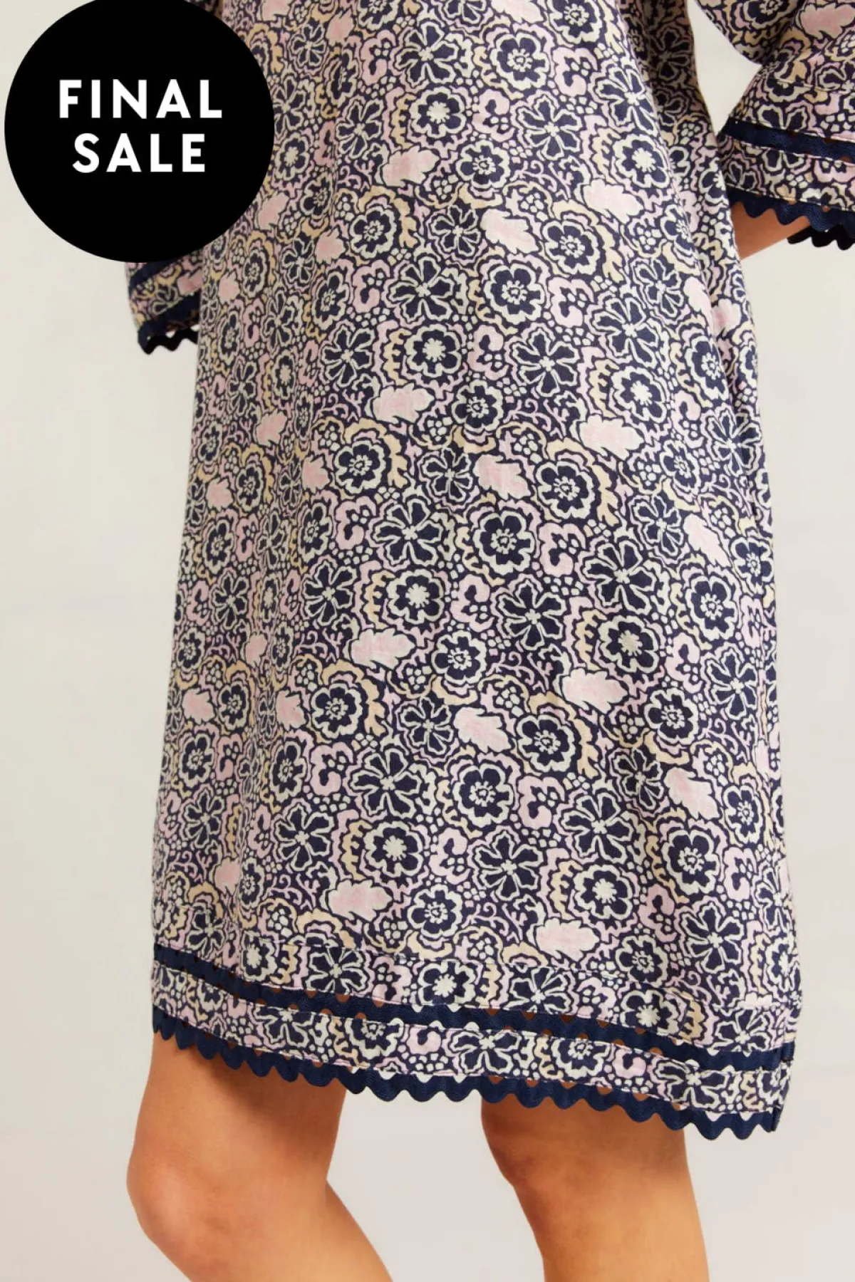 - Navy Raya Print with cuff and hem trim detailing