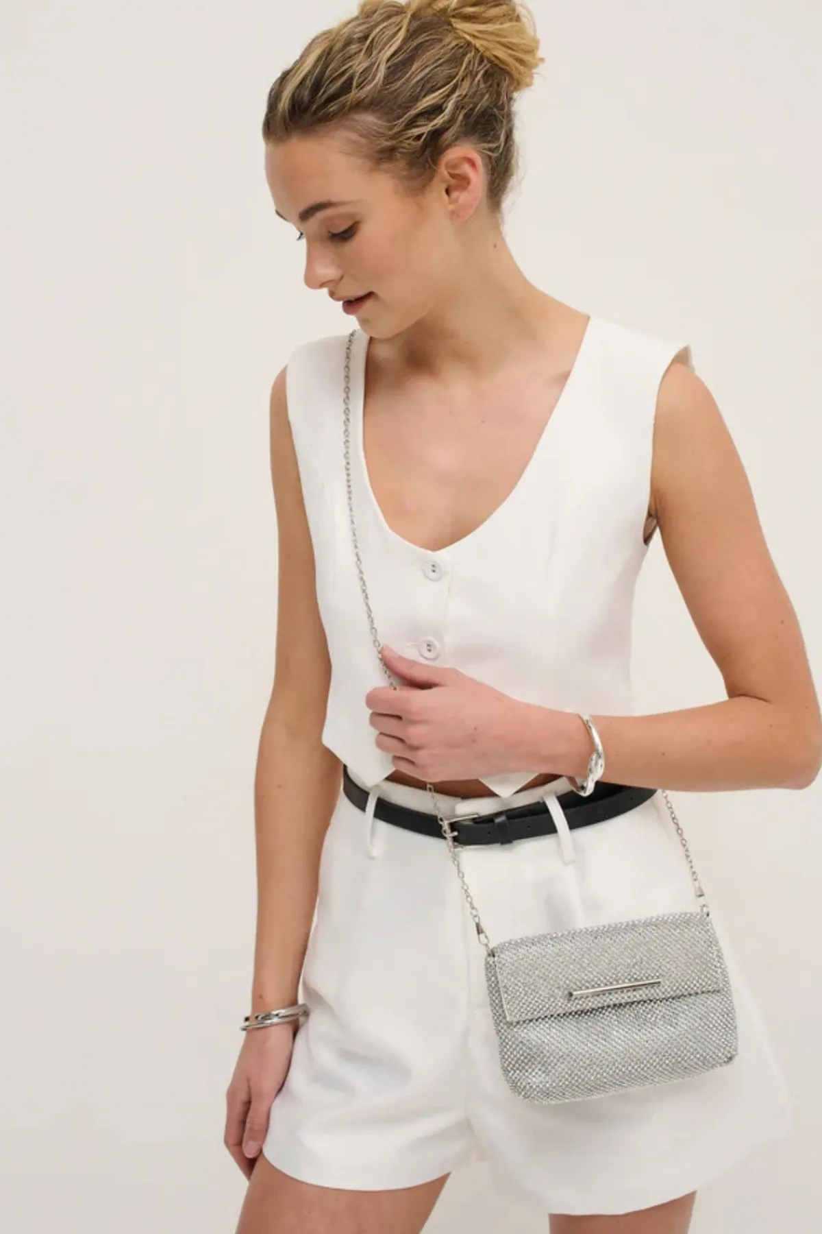 Elevate your ensemble with the Marie Glomesh Bag in shimmering silver. This glamorous accessory combines sleek design with luxurious appeal, perfect for adding a refined touch to any outfit. Its compact silhouette and crossbody style offer both elegance and practicality, making it an essential piece for sophisticated occasions.