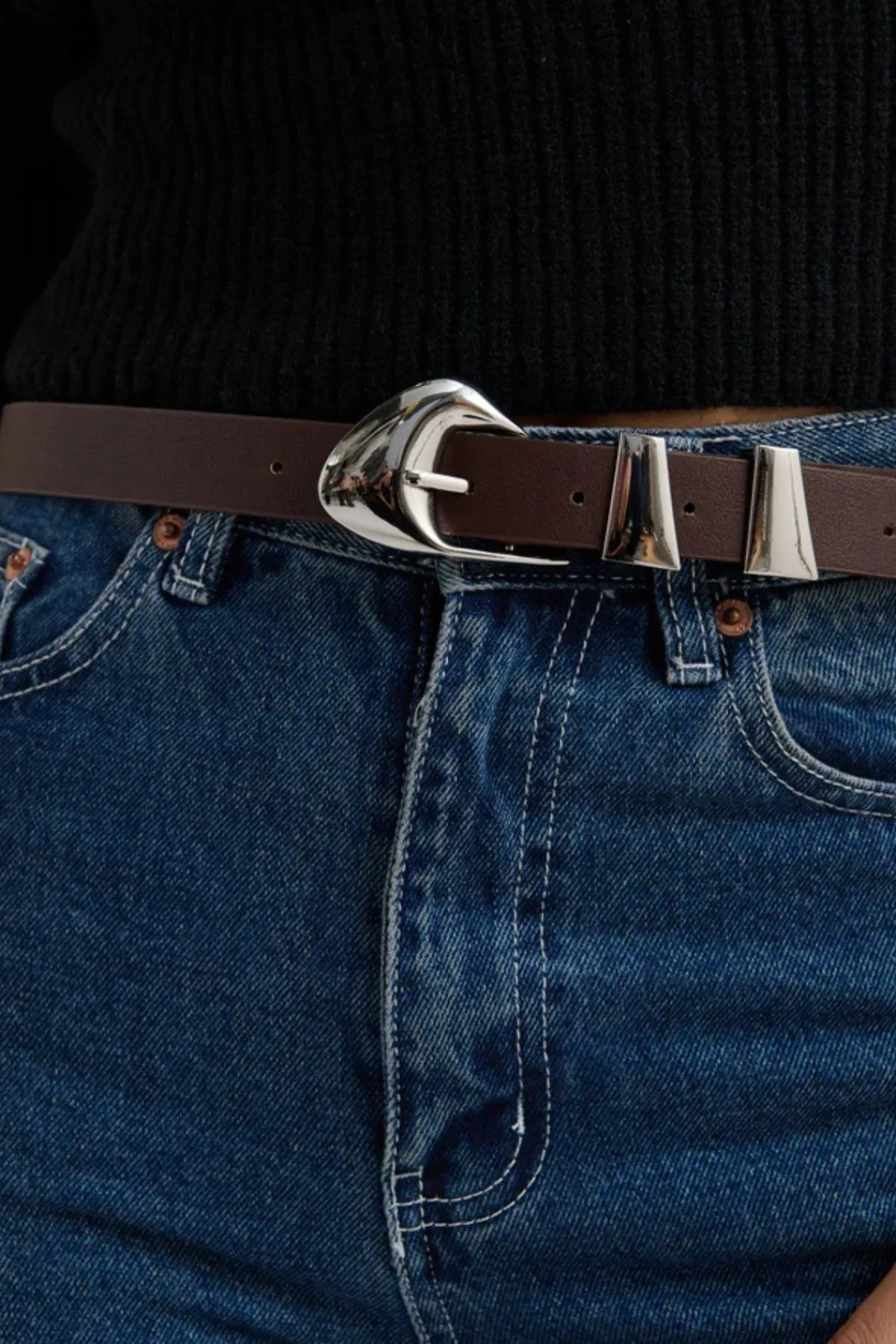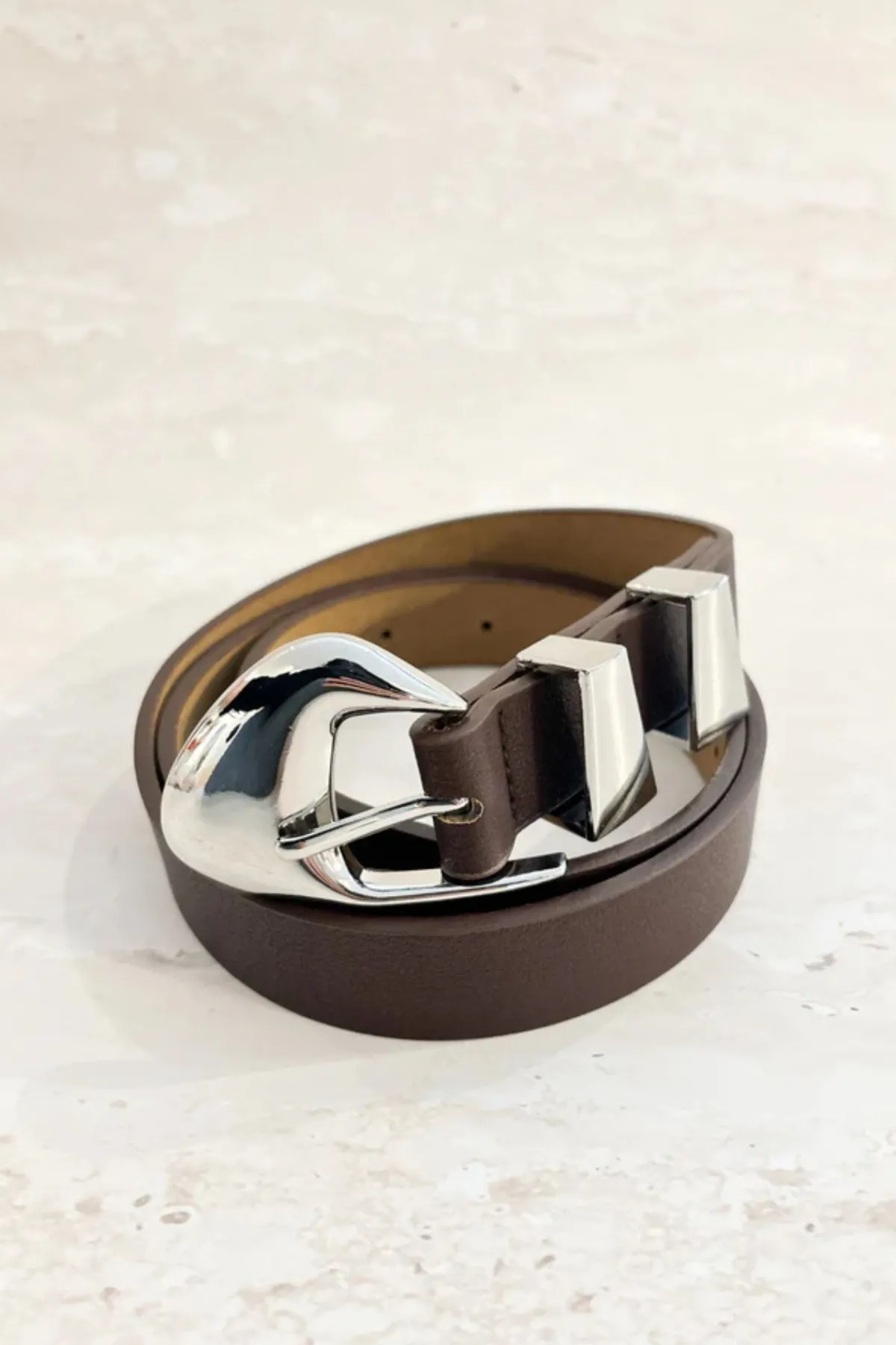 Elevate your wardrobe with the Pebble Dome Buckle Belt, crafted from premium leather and offered in classic brown and black. Its sleek dome buckle adds a refined touch, making it a versatile accessory that complements both casual and formal attire with effortless sophistication.