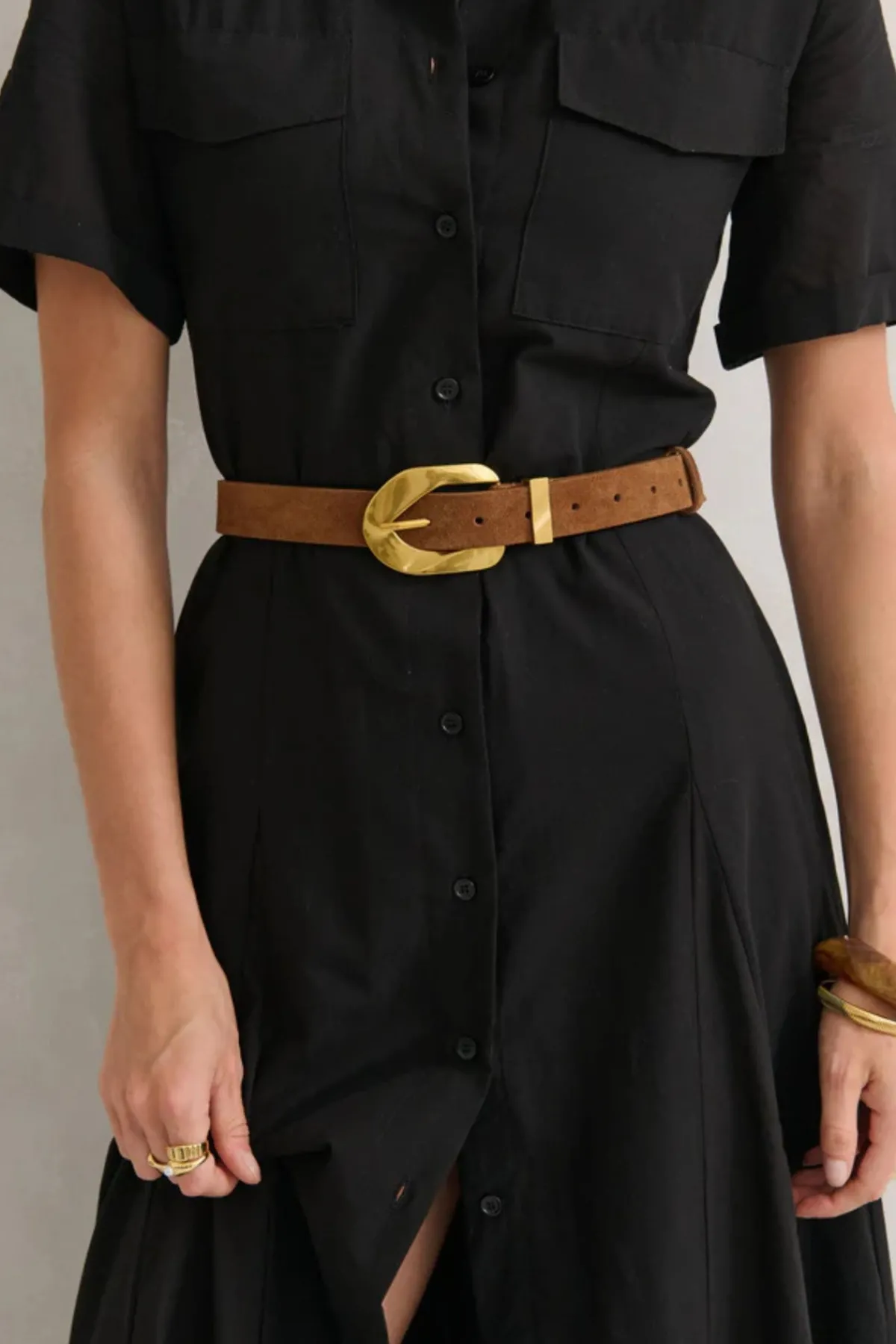 ANGELS WHISPER Belts-SUEDE CHAIN BUCKLE BELT TAN