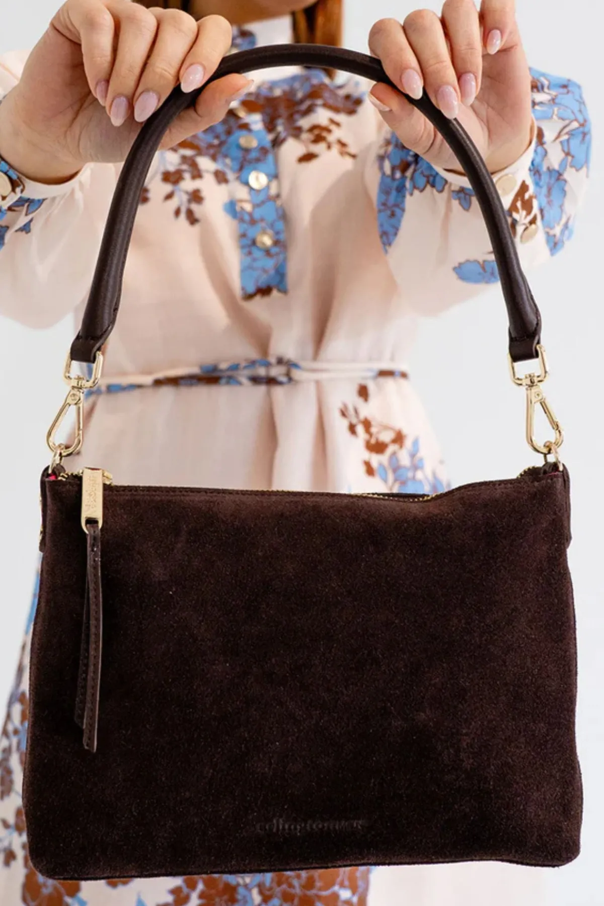 - Hardware: 14-karat light gold-plated hardware