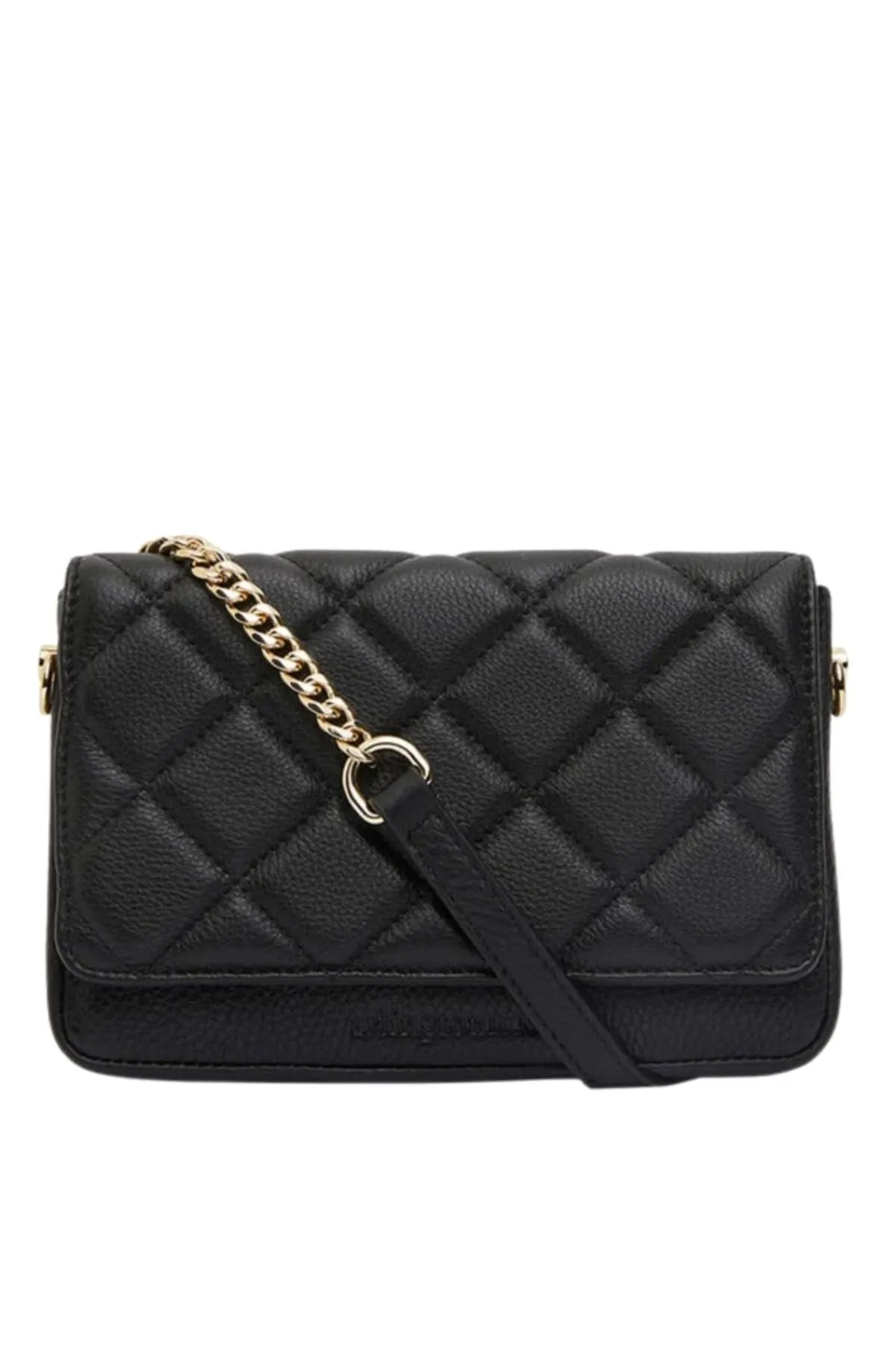 The Arlington Milne Sarah Crossbody in Black is crafted from premium leather and features a quilt stitch detail. Sarah can be carried clutch style or worn using the long shoulder strap. The envelope style top flap opens to reveal Arlington Milnes signature hot pink lining and an open top slip pocket with leather trim.
