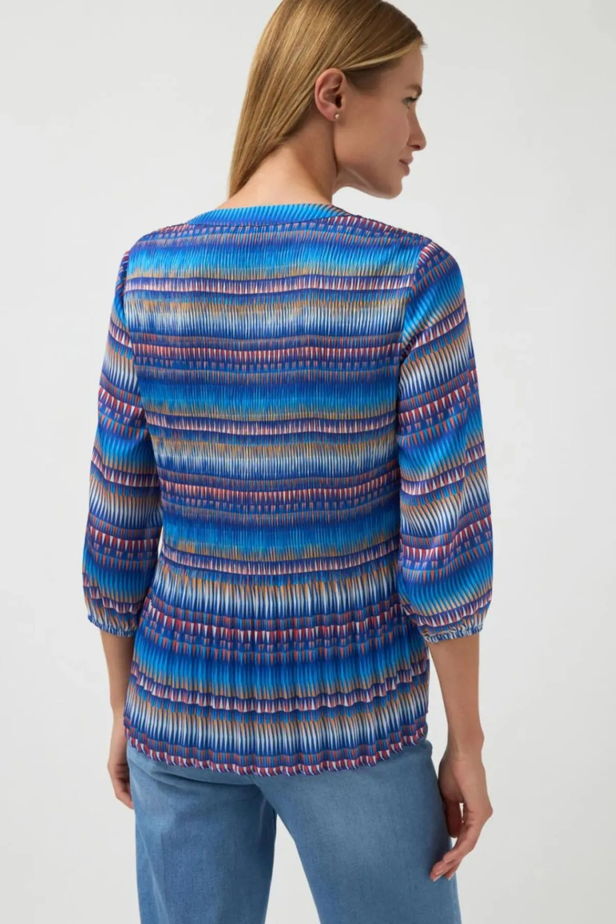 Experience luxury at its finest with the Encanto blouse. The mesmerizing geometric print and sumptuous, flowy fabric are expertly crafted and made in Spain, bringing the sophistication and beauty of the country to your wardrobe.
