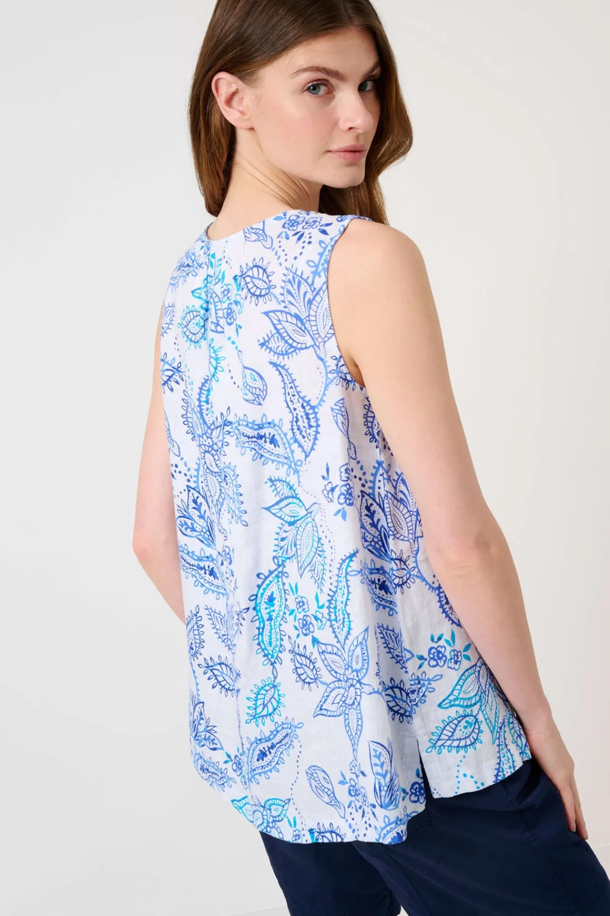 Stay cool and stylish this summer with the Vita Top! Made from high-quality linen, it offers both breathability and moisture regulation. The trendy V-neck features delicate gathers, while the relaxed fit and feminine gatherings ensure comfort. With a beautiful floral print, this blouse is a must-have for warm days and nights.