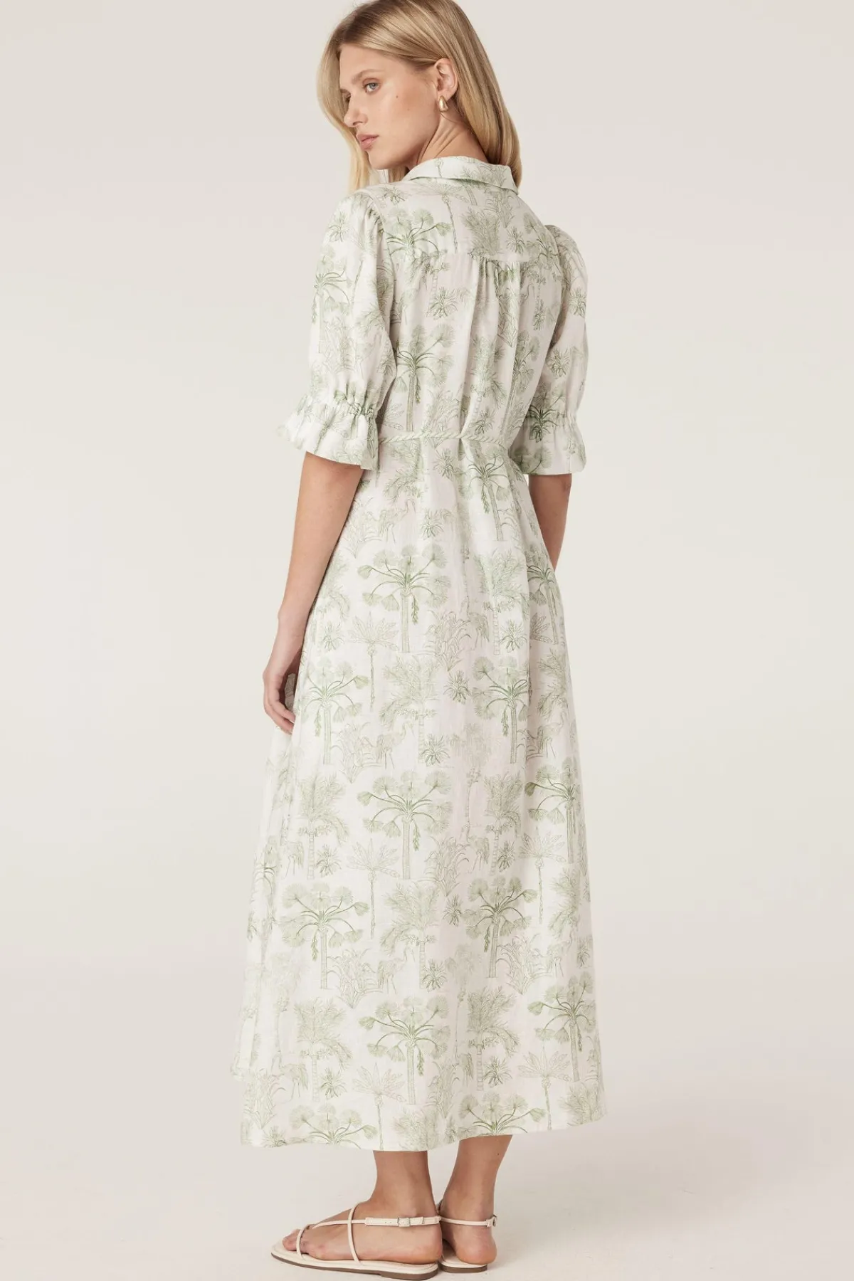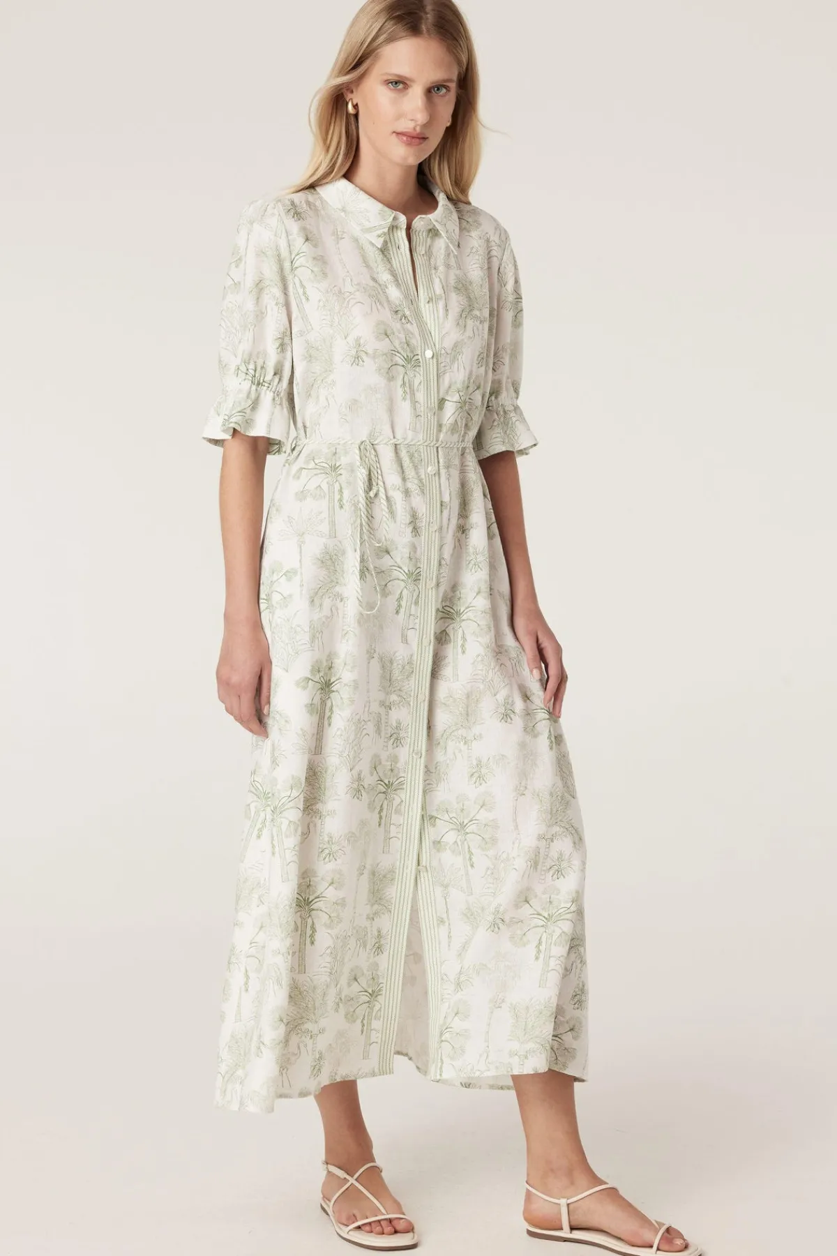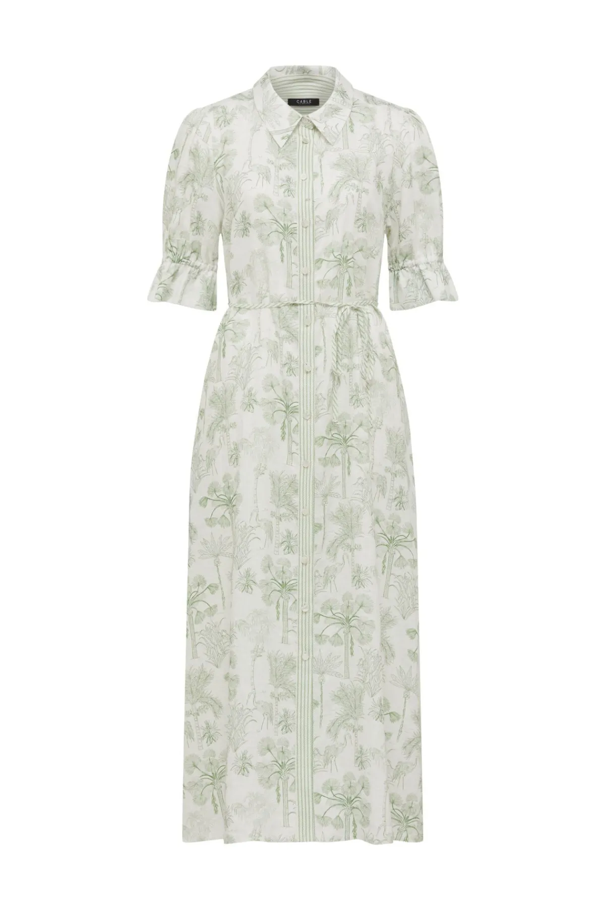 Made from pure French linen, the Avondale Linen Dress features a regular fit with a classic shirt collar and a button-through front. It includes sleeves with elasticated cuffs, side pockets, and a removable waist tie for adjustable styling.