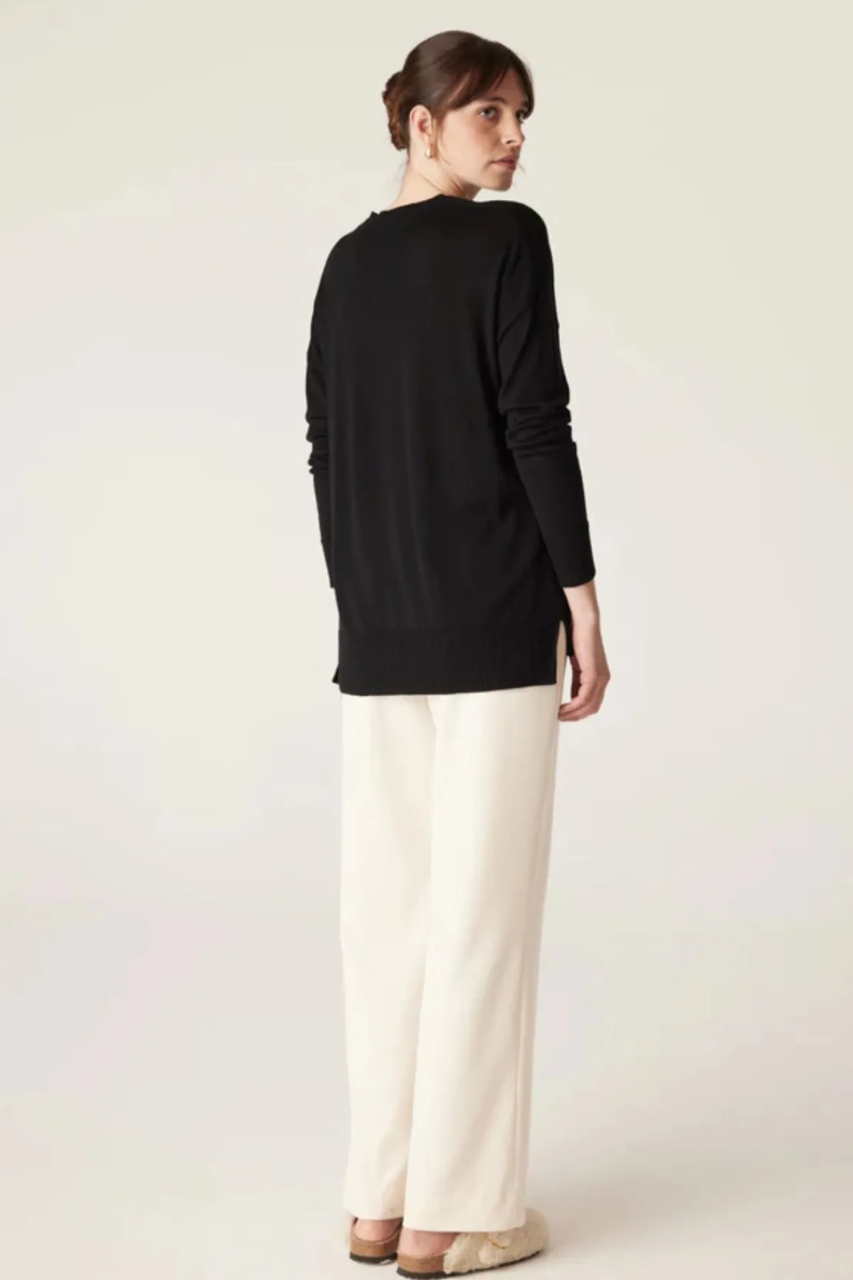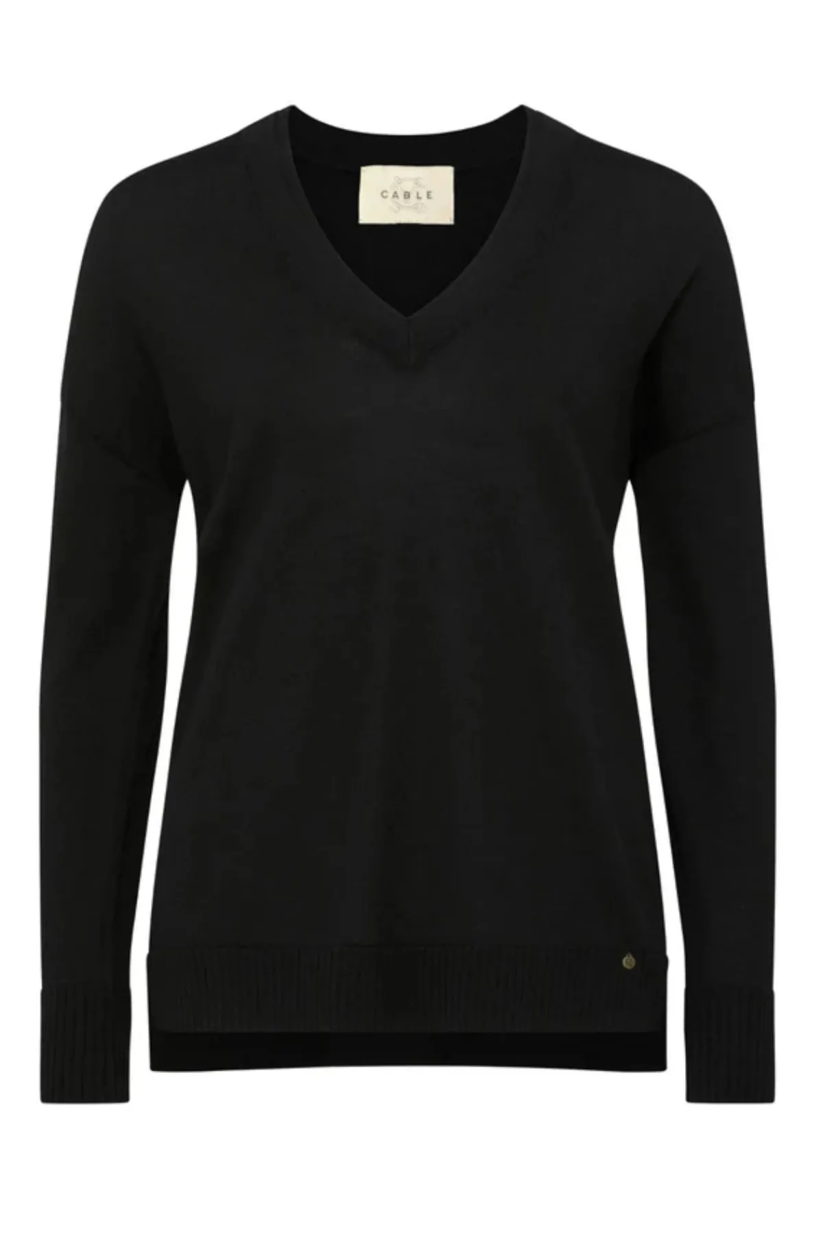 CABLE Jumpers|Winter Style-SAXON FINE MERINO JUMPER BLACK