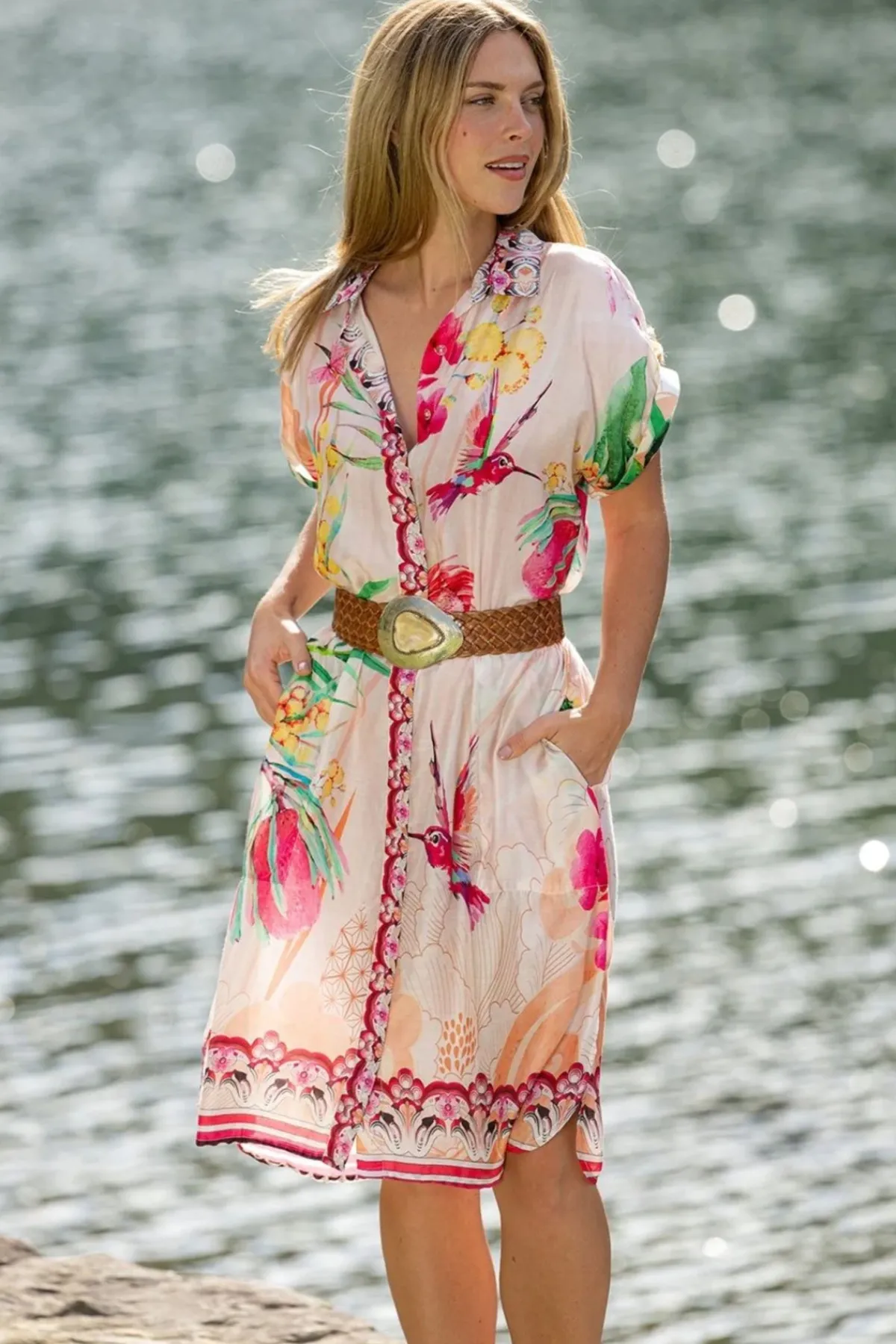 Crafted from luxurious silk viscose, this Dresden dress combines timeless elegance with refined simplicity. The classic collar and button-front closure create a polished silhouette, while short sleeves offer understated sophistication.