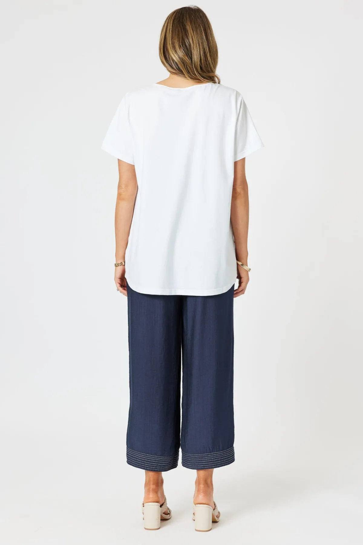 Add a graphic edge to your wardrobe with the Geometric Top – a bold yet refined piece designed to stand out. Featuring an abstract block print in neutral and navy tones, this top blends clean lines with an artistic touch. Crafted with a breathable linen front and soft cotton jersey back, it offers the perfect mix of texture and comfort. The short sleeves and classic round neckline make it an easy, throw-on-and-go piece.Pair it with wide-leg pants or casual denim for a fresh, effortless look.