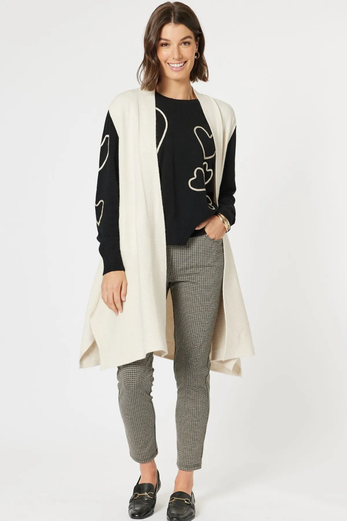 A versatile and stylish addition to your wardrobe, the Casa Longline Knit Vest is perfect for any occasion. This vest will keep you warm, comfortable and looking great throughout the day. Its longline design adds a touch of sophistication and coverage while still being easy to wear and pair with a variety of outfits. Invest in this must-have piece and elevate your fashion game with effortless style!
