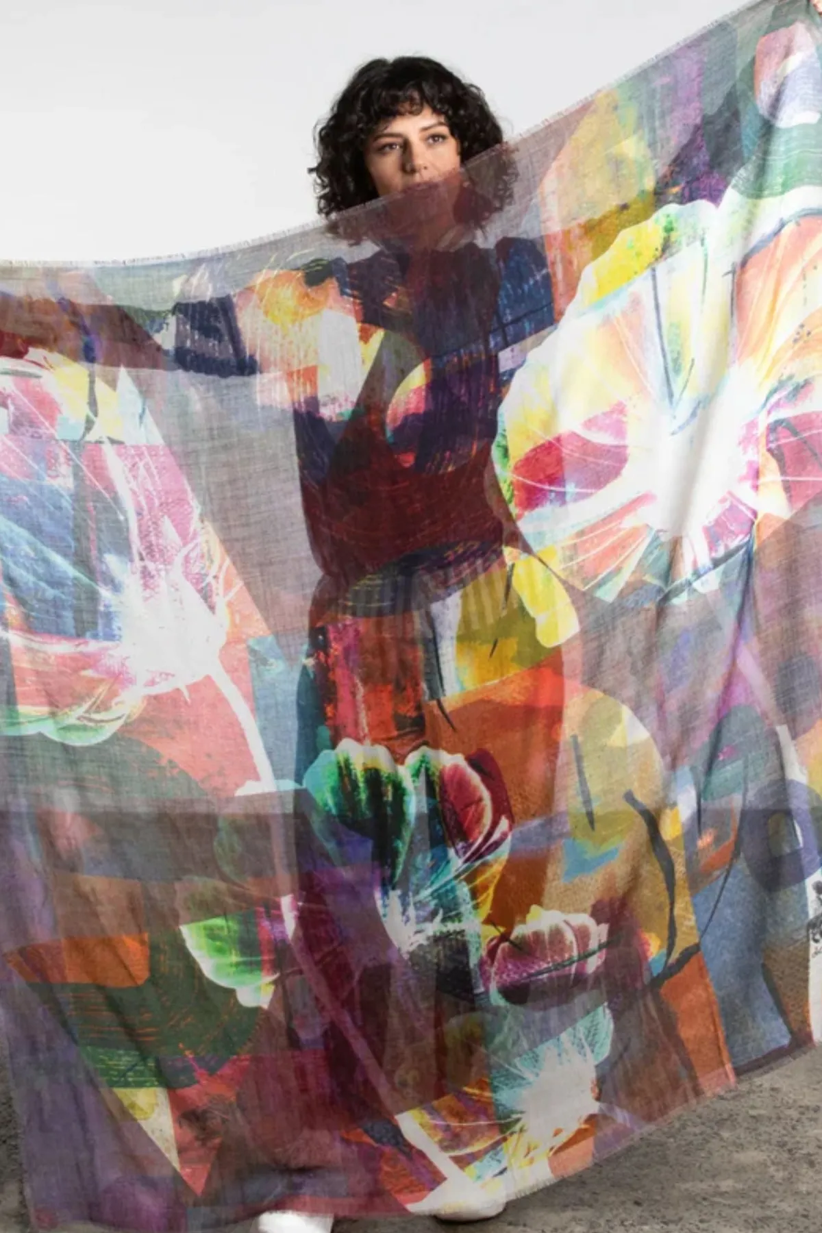 Fine merino wool scarf in original design by Dog and Boy. Oversized floral print.