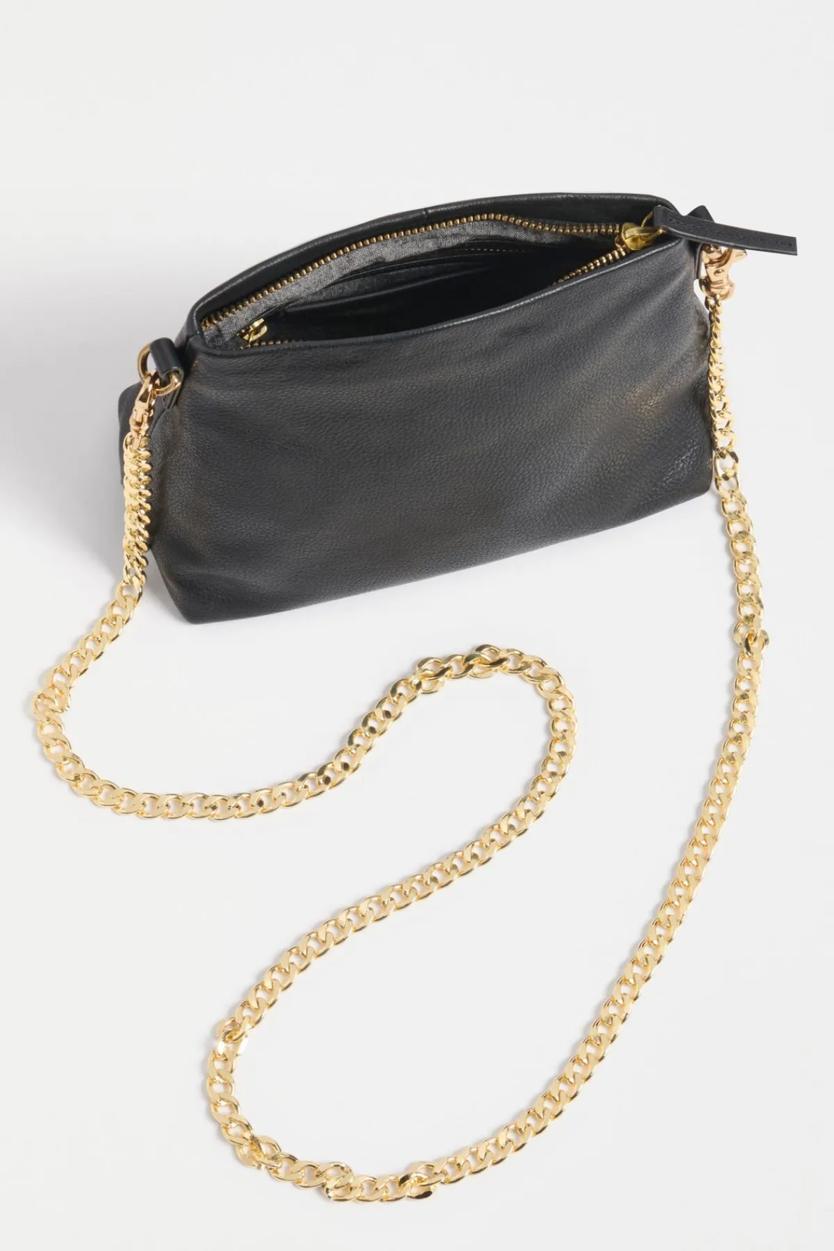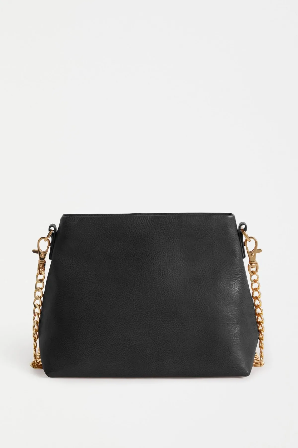 - Detachable polished chain strap — wear crossbody or carry as a clutch