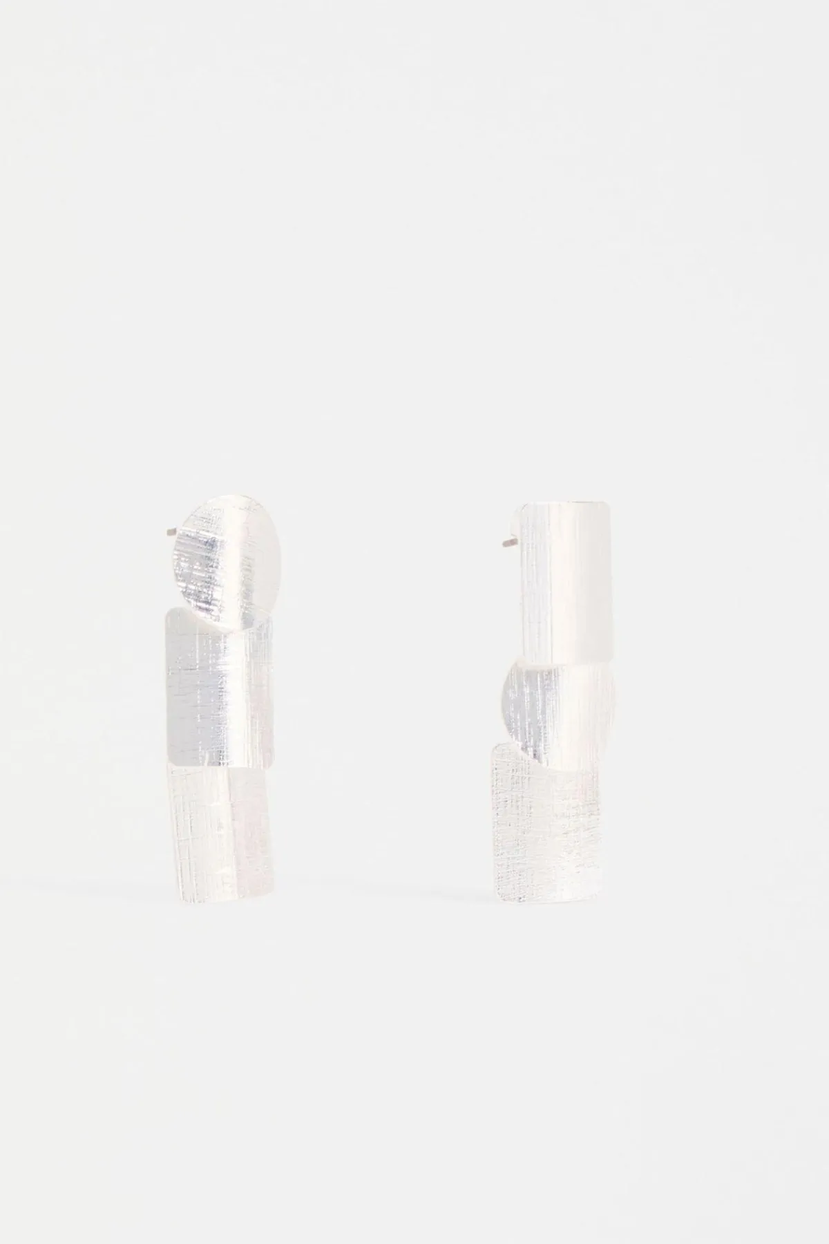 The Paerr Drop Earrings are a classic, unique design with impact. Featuring a mid-sized drop style comprised of two rounded rectangles and a circle in a row affixed to a stud back. Perfect for both work and special occasions alike.