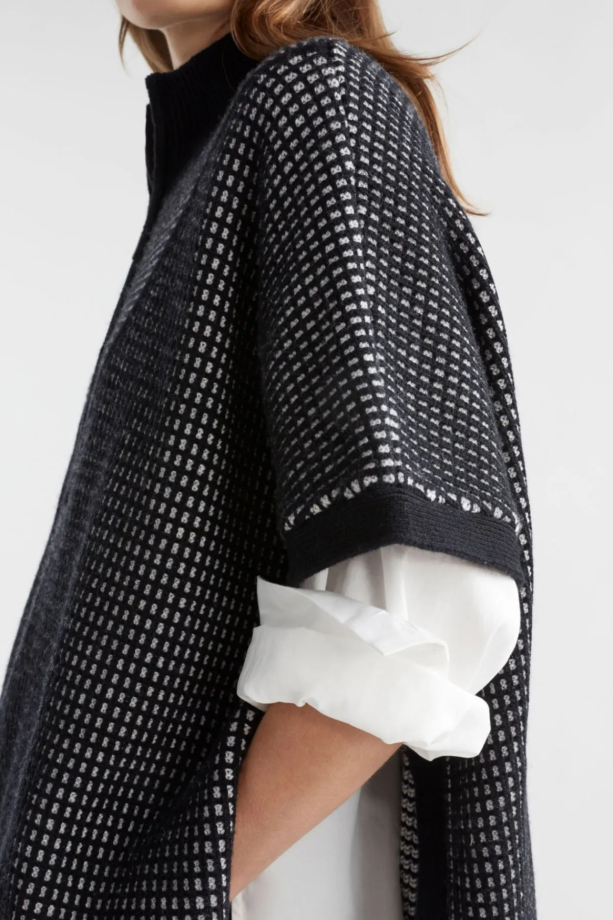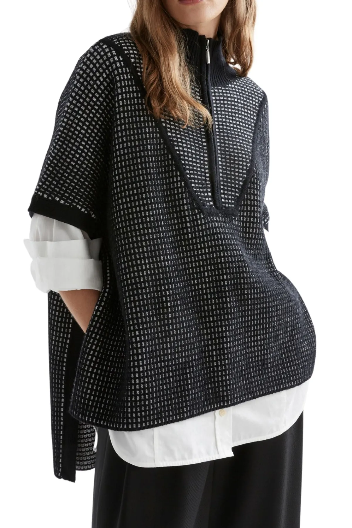 Easy yet unmistakable. An easy to layer piece that instantly pulls together a look. The Cheil Poncho is crafted from a wool blend in a monochromatic grid stitch, offering warmth and texture without bulk. A zip funnel neck adds versatility, while functional side buttons define the armholes for easy movement. From denim to dresses, it’s the layering piece that’s ready to take you wherever the day leads.