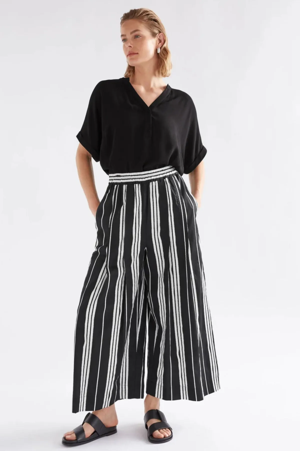 The Reza Pants are a high-rise pant featuring a wide-leg silhouette in 100% organic cotton. They are pull-on style with a wide elasticated waistband for a comfortable and easy fit. These pants are finished with stitched down tucks from the waist adding extra volume in the leg.