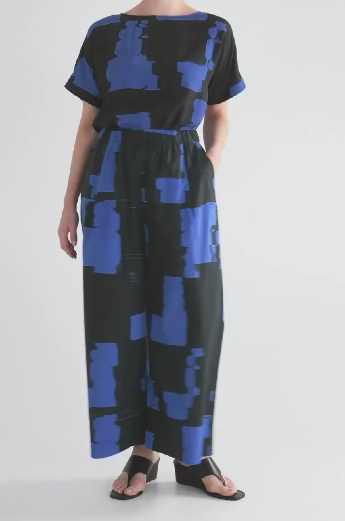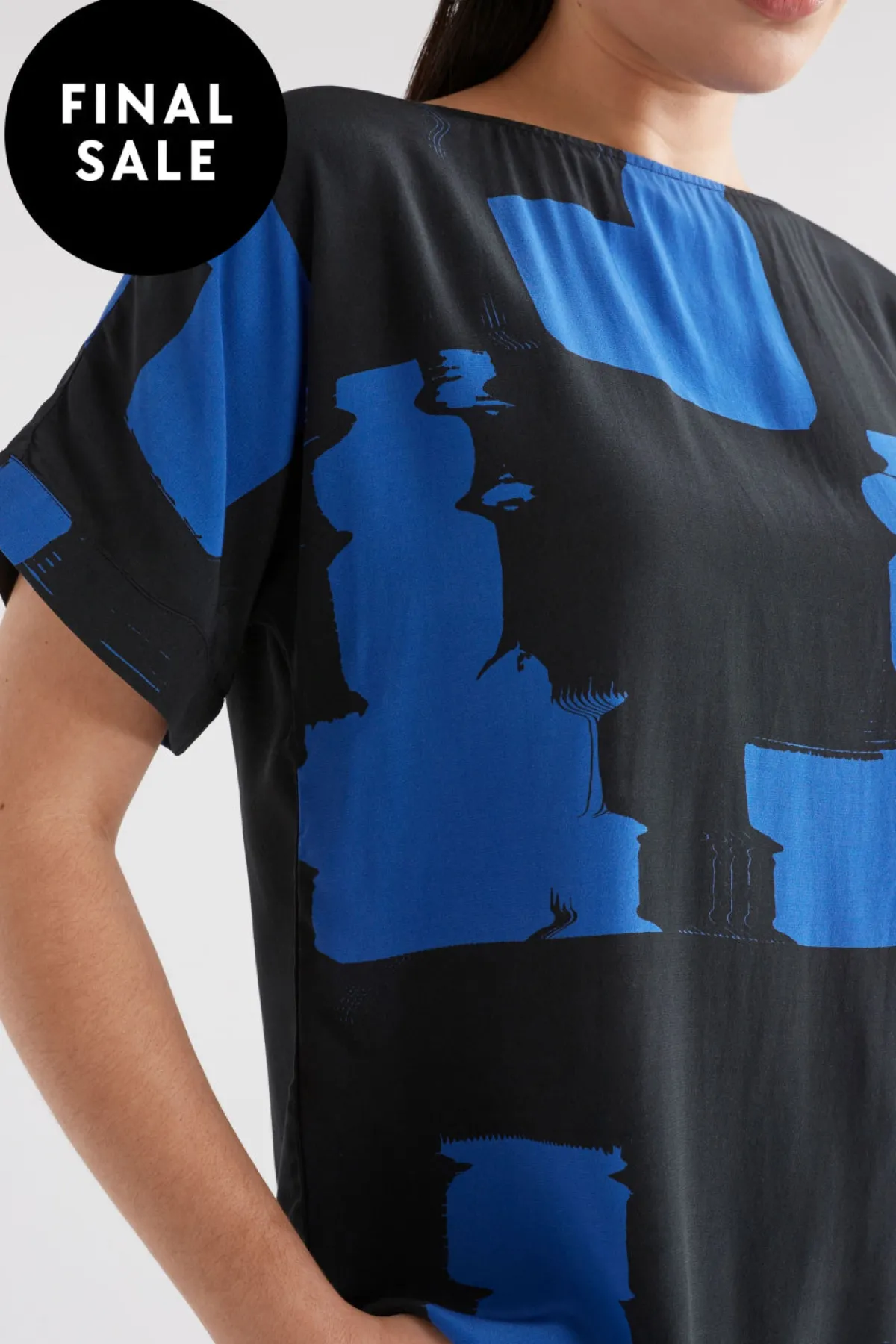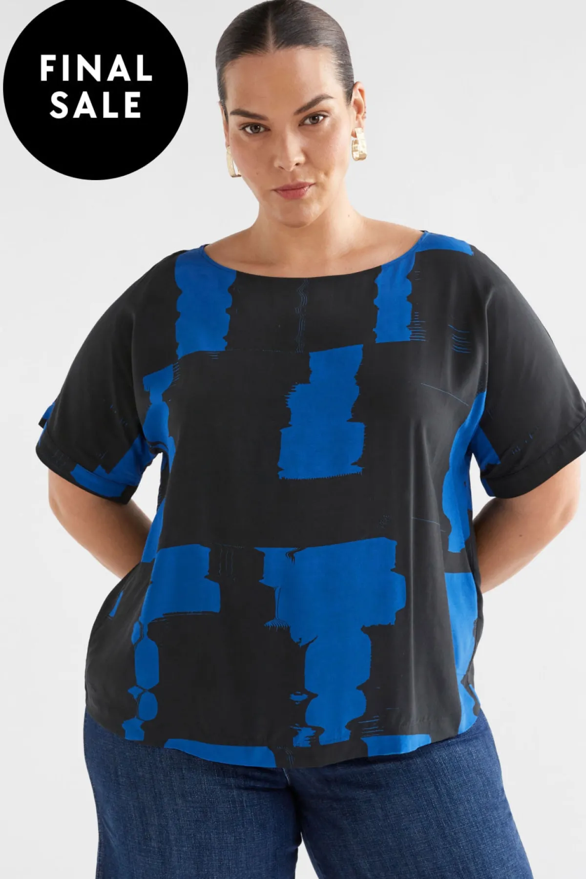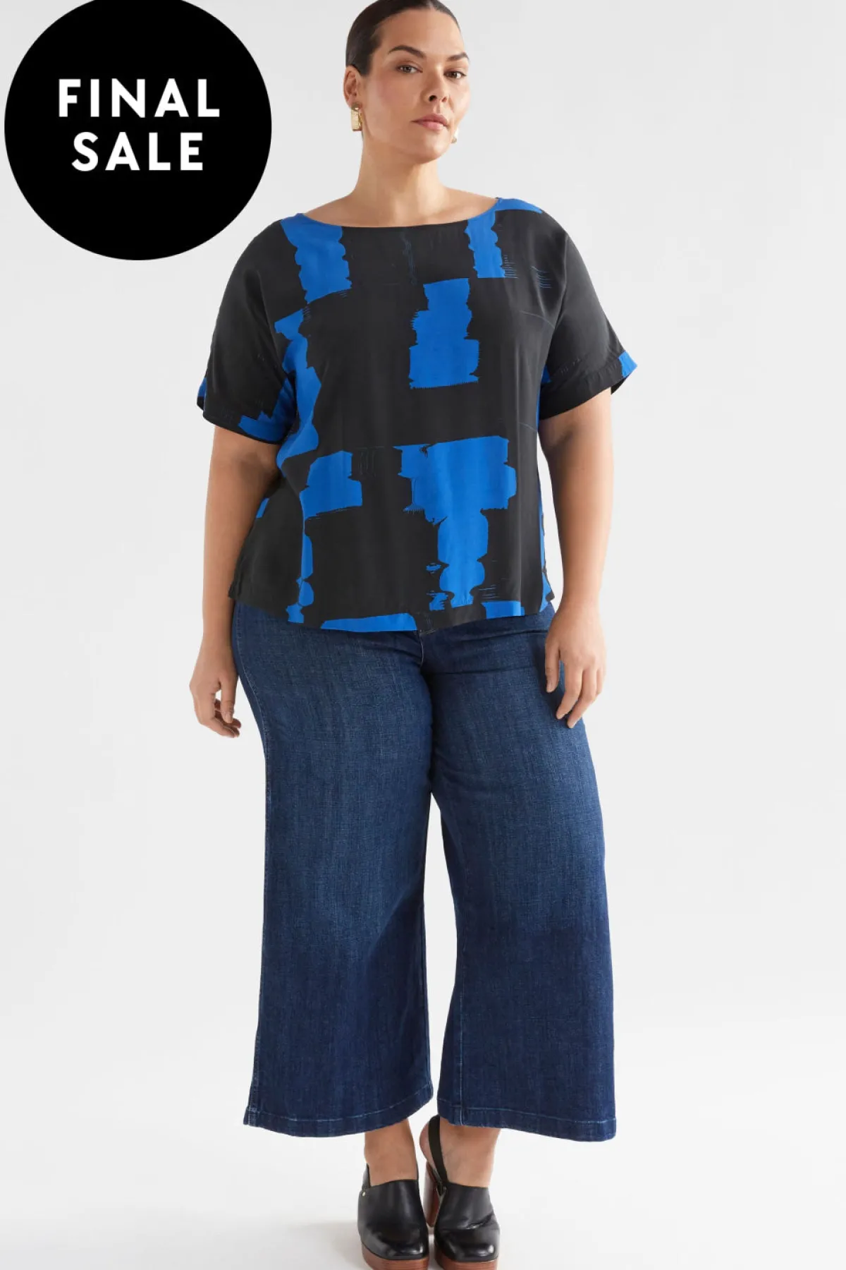 The Eneste Top is a boat neck top, featuring the limited seasonal Blue Rolla Print – an abstract print in complementary hues of blue. The top’s dropped shoulder extend into comfortable cap sleeves that stop half way up the arm, offering coverage.