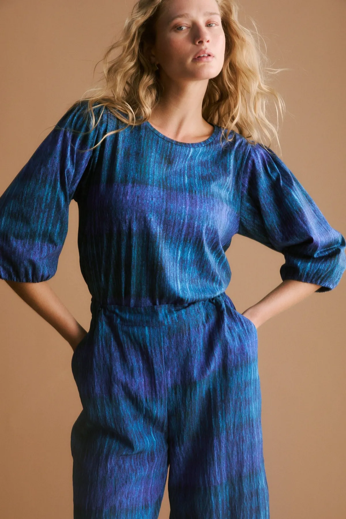 An ELK favourite shape, the Maer Tee, now in the fresh Mikko print. Featuring balloon-like, three-quarter sleeves, created from subtle shoulder tucks and a lightweight woven cotton lining in the sleeve to give subtle volume. Crafted from an organic cotton, stretch jersey, this is the perfect piece to take from desk to dinner.