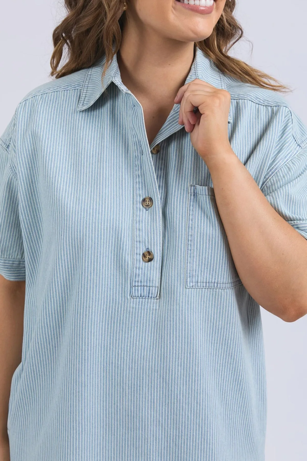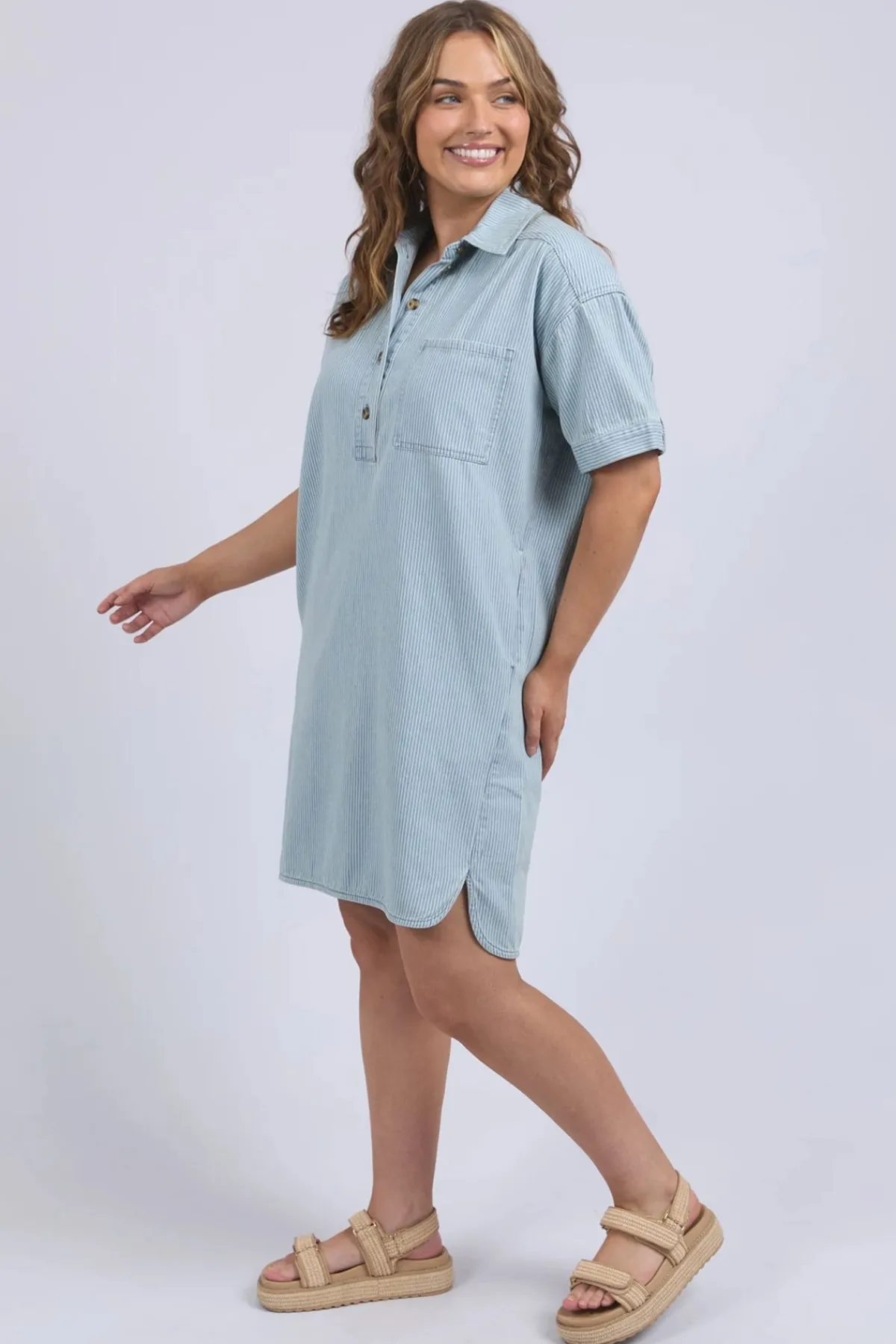 Look no further than the Jenna Stripe Denim Dress for the ultimate in throw over comfort. Featuring a half placket button front and pockets this super cute striped denim dress is the ultimate piece for a casual weekend outing.