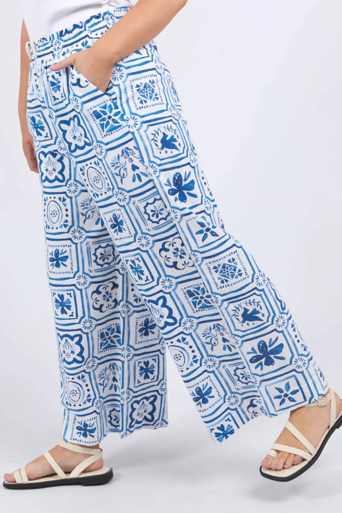 Crafted from a soft linen-viscose blend, these relaxed shorts feature a striking ocean tile print exclusive to Elm, giving them a vacation feel even when you’re just ducking out for coffee. The elastic waistband with rope drawstring and tassel detail adds comfort and a fun coastal feel, while handy side pockets keep things practical.