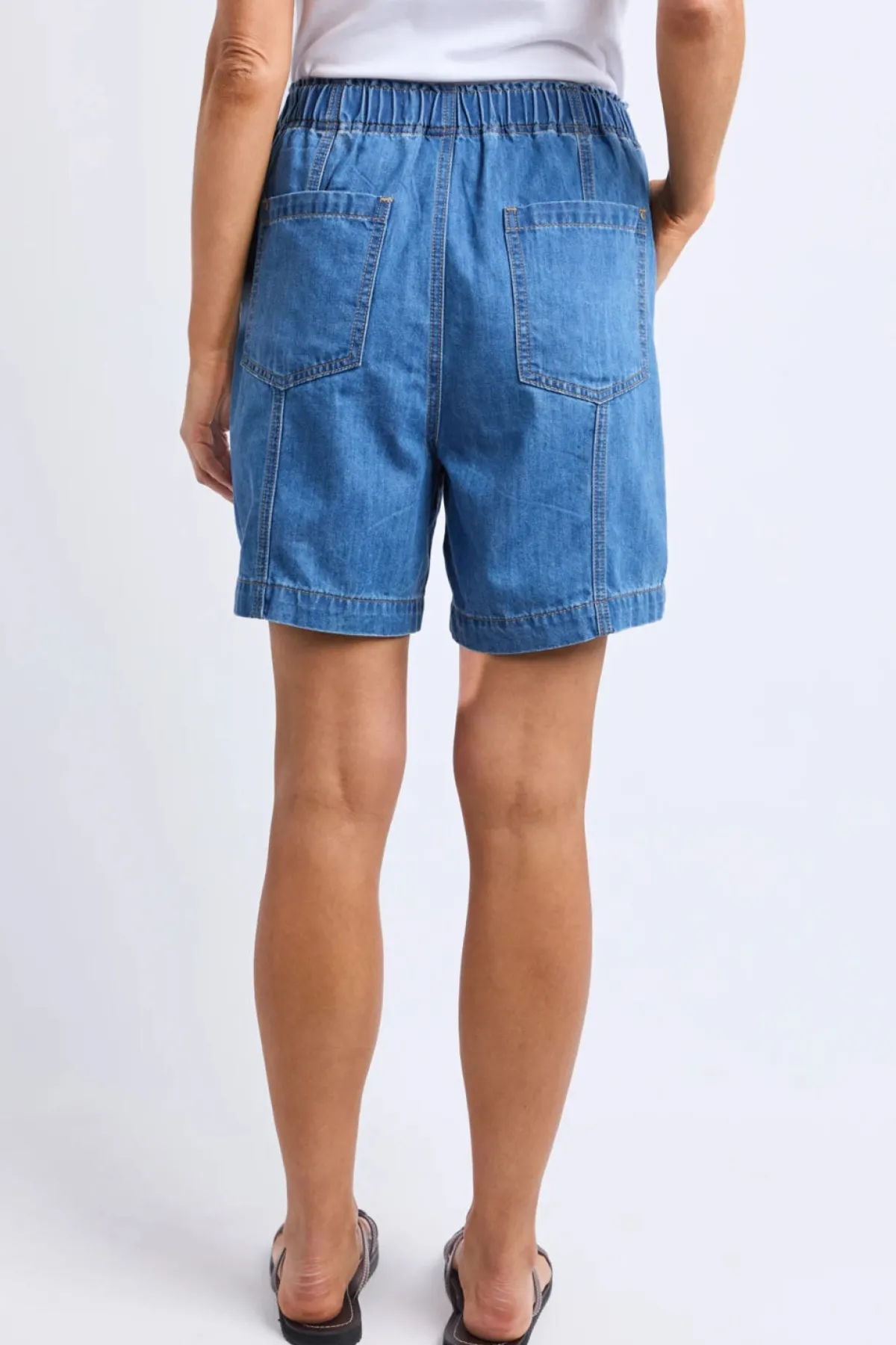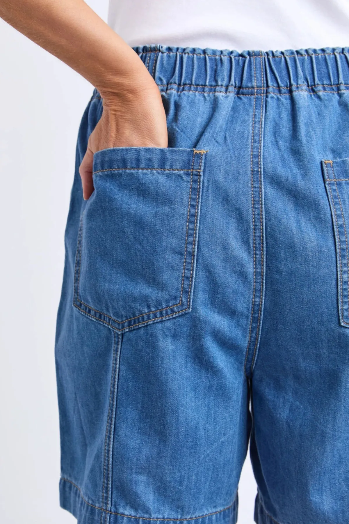 Say hello to the Jovie Denim Short, ultimate everyday comfort, elastic waist, and knee length. Style it your way for an effortless look that works for any day of the week.