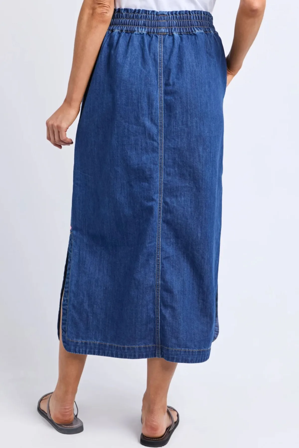 ELM Skirts-CLOVER MIDI DENIM SKIRT MID-BLUE