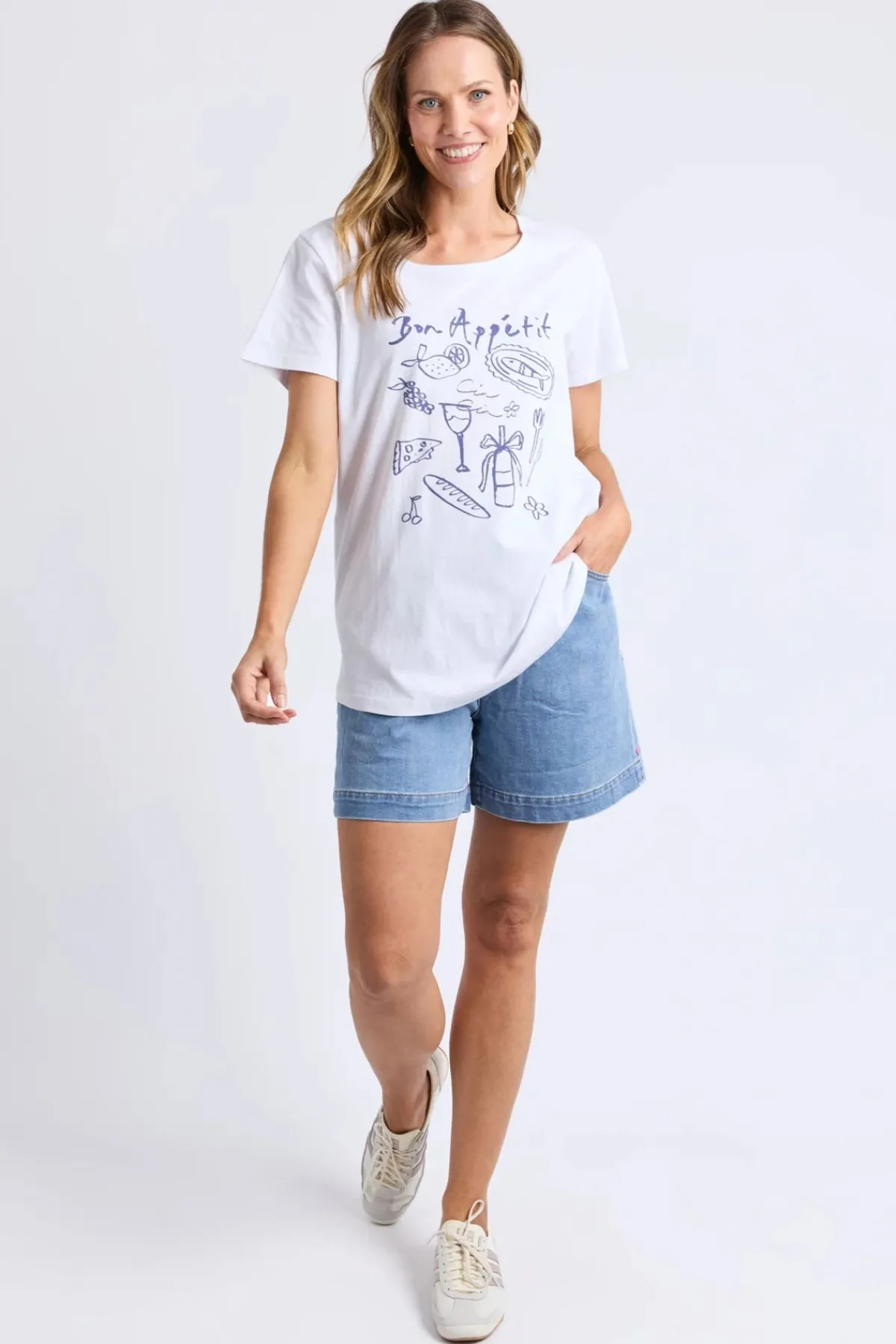 Bring a dash of culinary charm to your summer adventures with this delightful tee, complete with a cheeky “Bon Appetit” print in vibrant blue on a clean white base. Perfect for jet-setting foodies who live for their next gastronomic discovery, this playful piece keeps things light and fun whether you’re exploring bustling food markets or settling in at a cosy bistro.