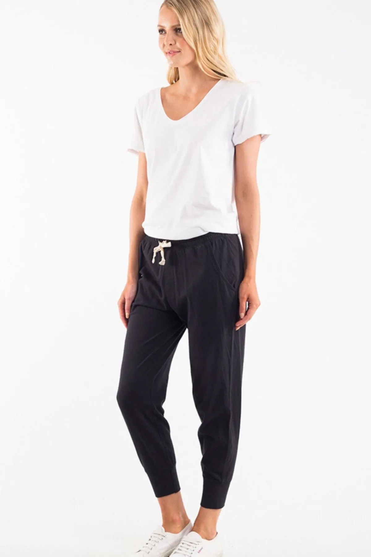 Perfect to lounge around in at home, these are versatile enough to wear out to lunch, on shopping trips, while travelling, and everywhere in-between.Feel secure with a thicker waistband and cloth drawstring that helps give you the best fit. Side pockets let you stash your fave smaller items, and a tapered bottom leg creates a slimmer effect.Jersey fabric keeps things light and is soft to the touch. We’re loving the pigment dye wash as it gives such a unique tone to the material.