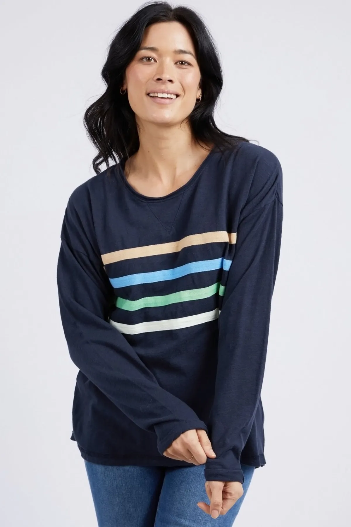 A colourful and fun seasonal crew featuring coloured herringbone tape on the chest. Finished with a curved back hem, this relaxed crew will keep you warm on cooler days.