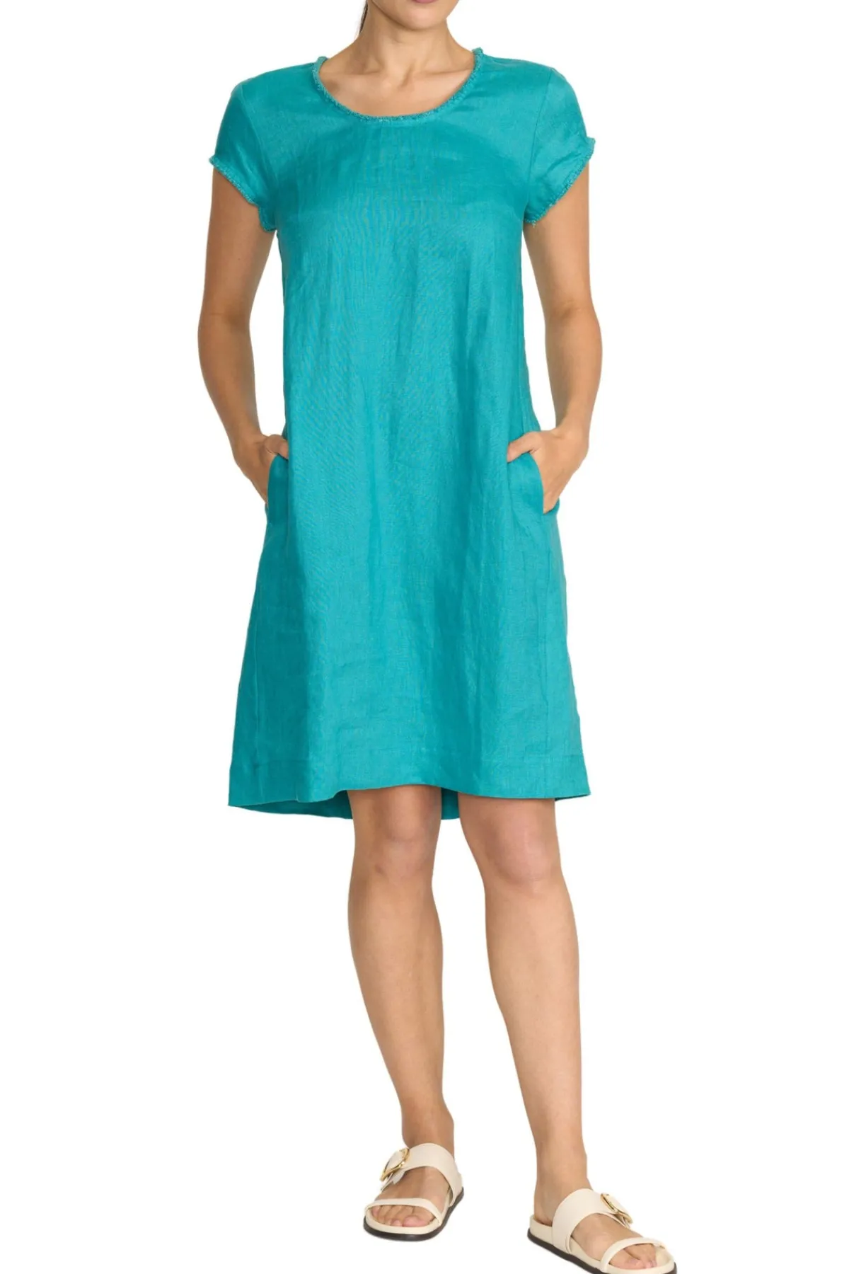 Easy, breezy and ready for warm days. The Festival Dress is cut from pure linen with a relaxed A-line shape that skims the body, finished with a softly scooped neckline and neat cap sleeves. Side pockets keep it practical, while the airy feel makes it an effortless throw-on from brunch to beach.