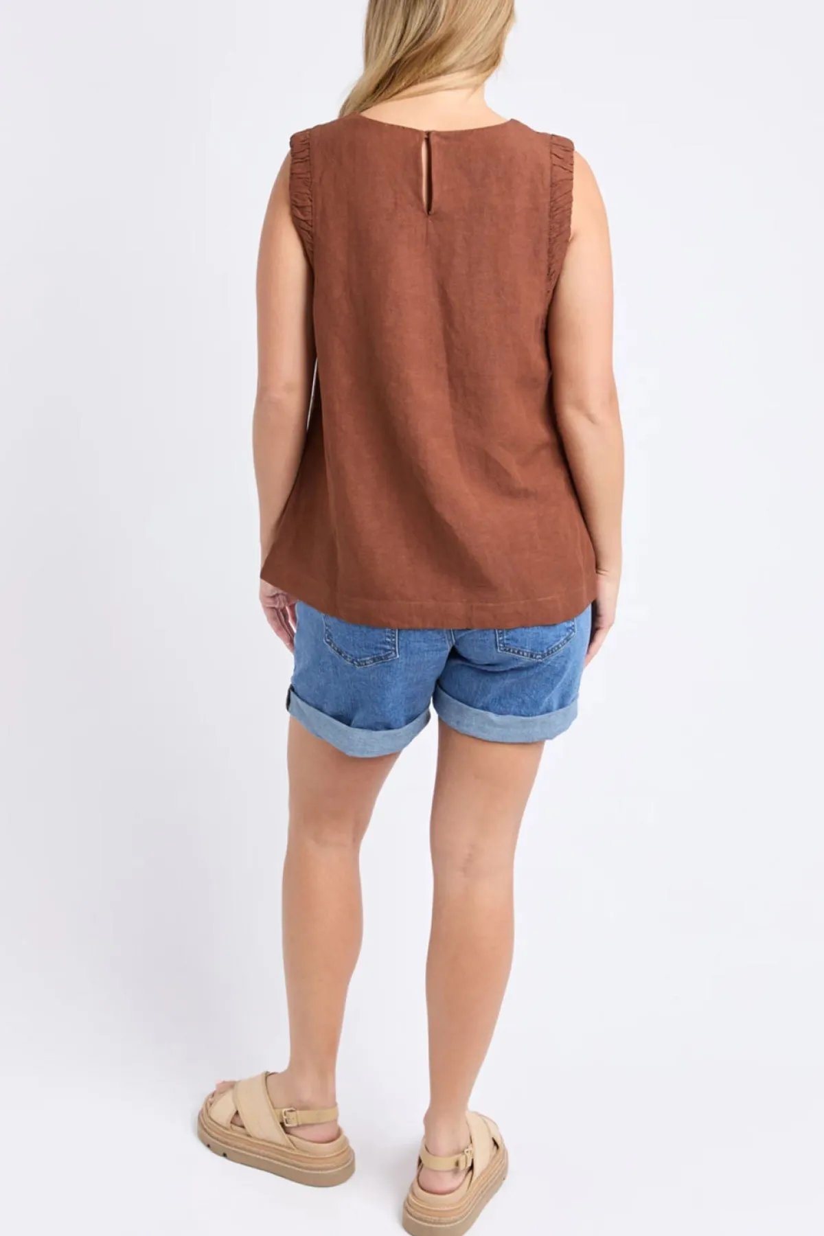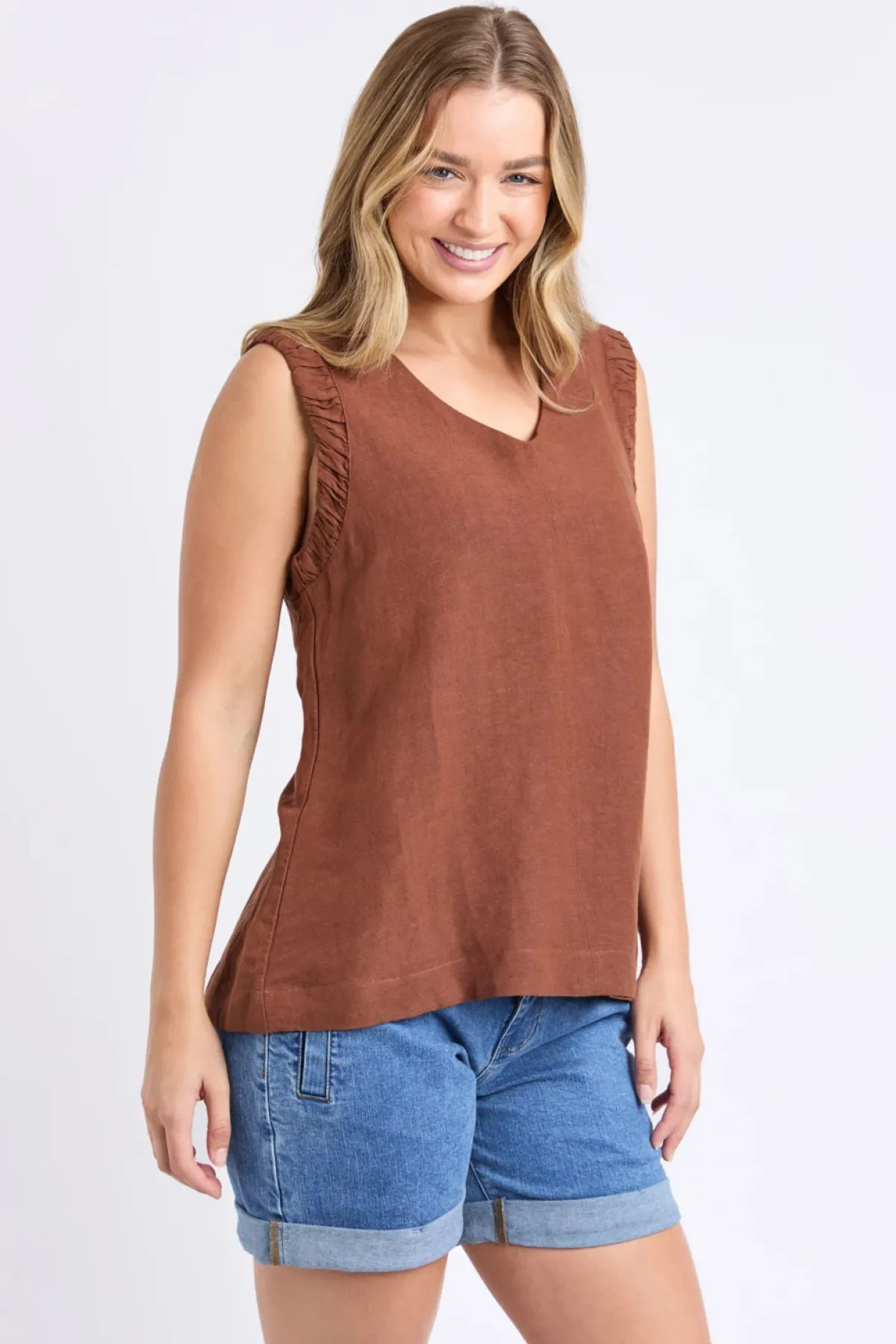 The Bermuda Top is all about relaxed summer vibes. With its linen blend feel, playful frill detail and clean V-neckline, it is a style that looks just as good dressed up as it does casual.