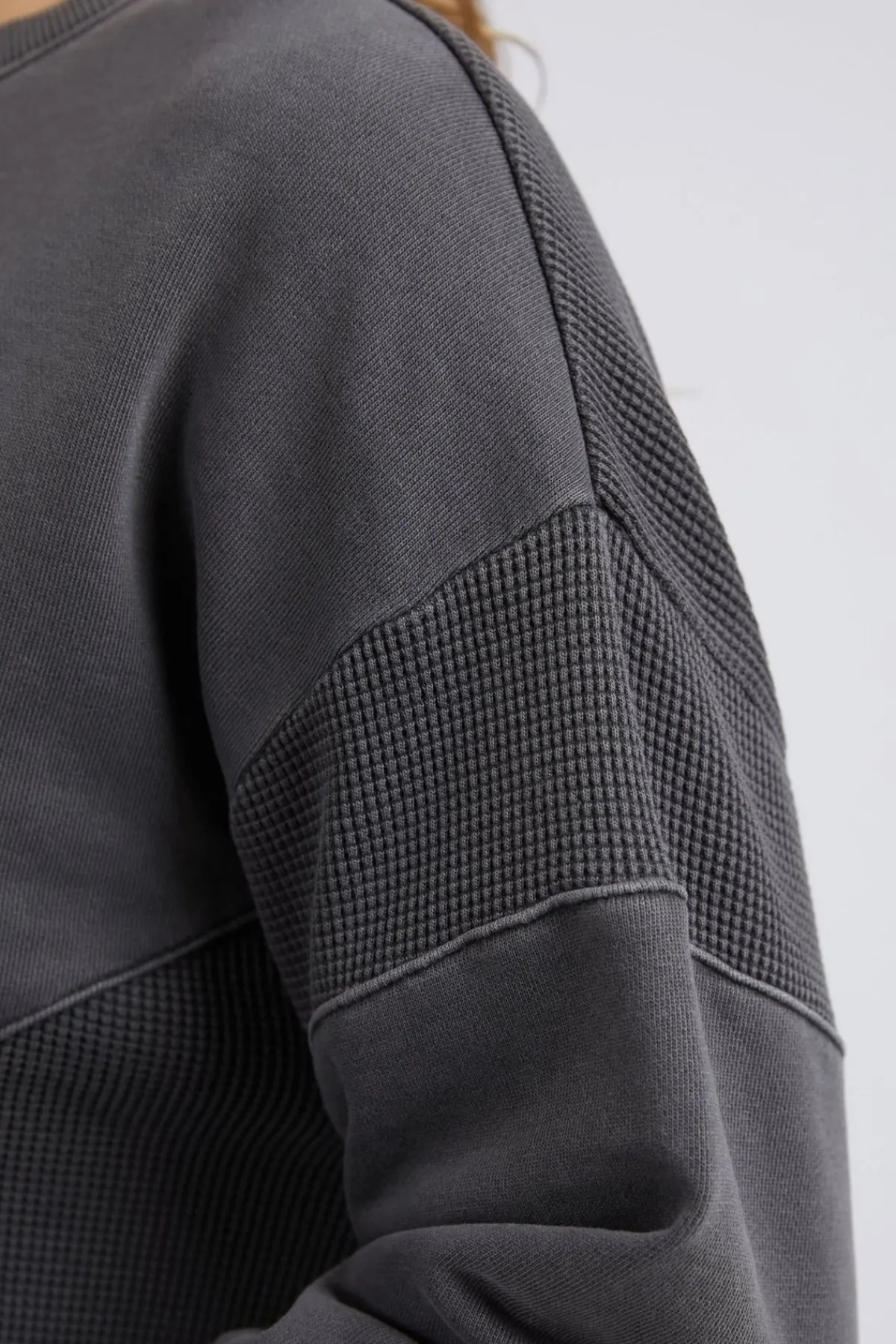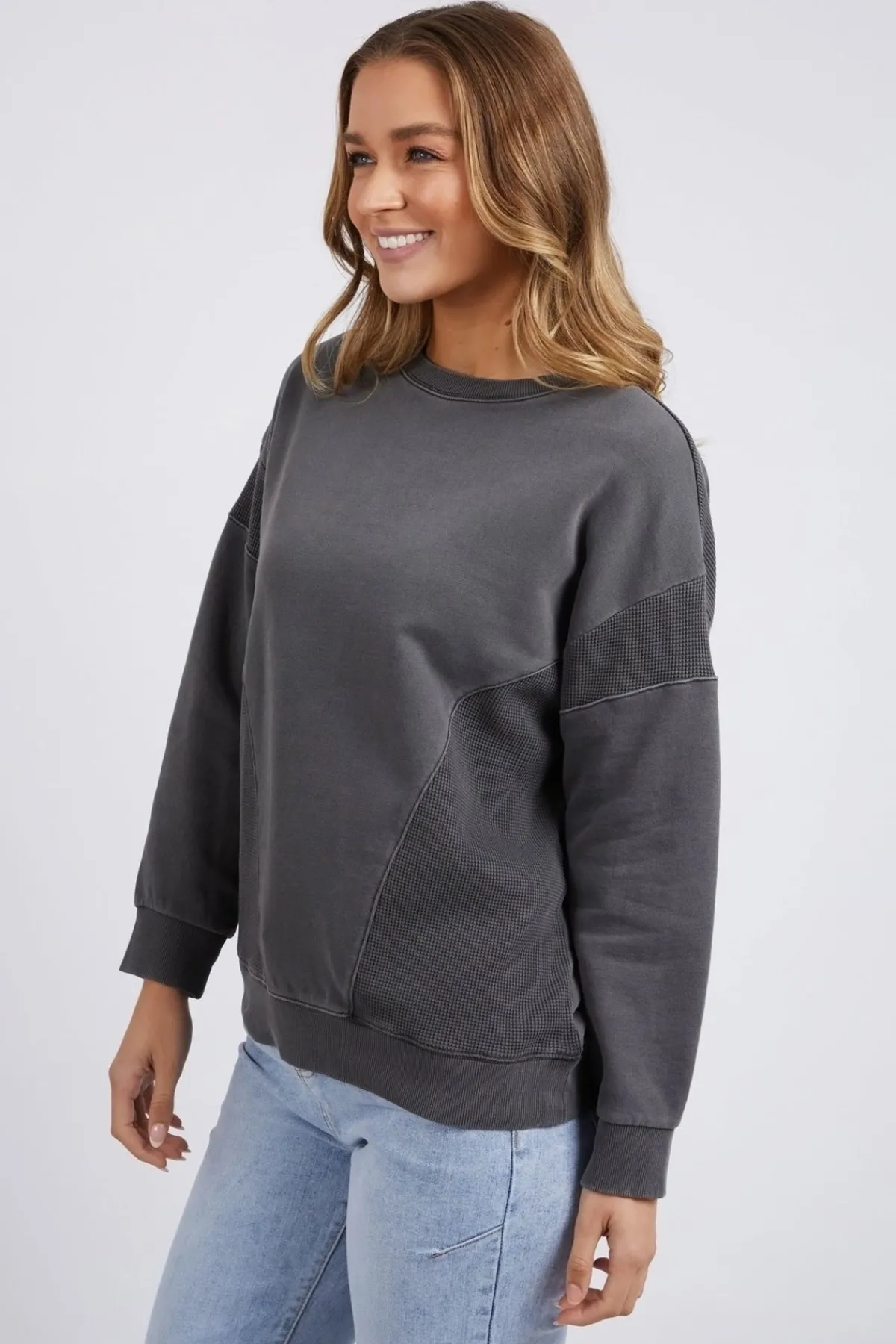 With distinct textured details and a relaxed fit, this sweatshirt will elevate any look, whether you’re out running errands or hanging out with friends. Made from stretch jersey fabric with a classic crew neck and ribbed cuffs, this 100% cotton sweatshirt is also easy to care for with machine washing.