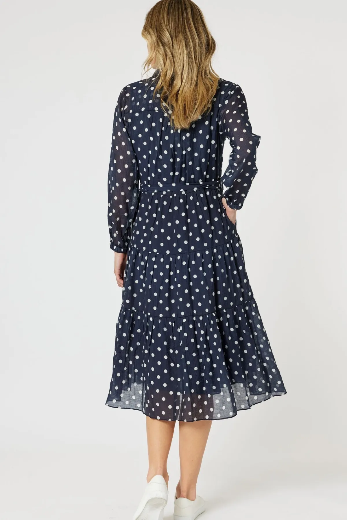 We all need that GO-TO dress and the Sorrento Spot Button Dress by Gordon Smith is it! A tiered skirt which gives the dress that flowy drama but maintaining a flattering mid length A-line shape.The relaxed elastic waist allows for all day comfort and comes with a self fabric tie for a versatile look. We all love arm coverage, so enjoy the sheer long sleeves that have an elastic cuff, allowing you to style the sleeves anyway you like without them falling down! Did I mention the dress is lined and not see through!