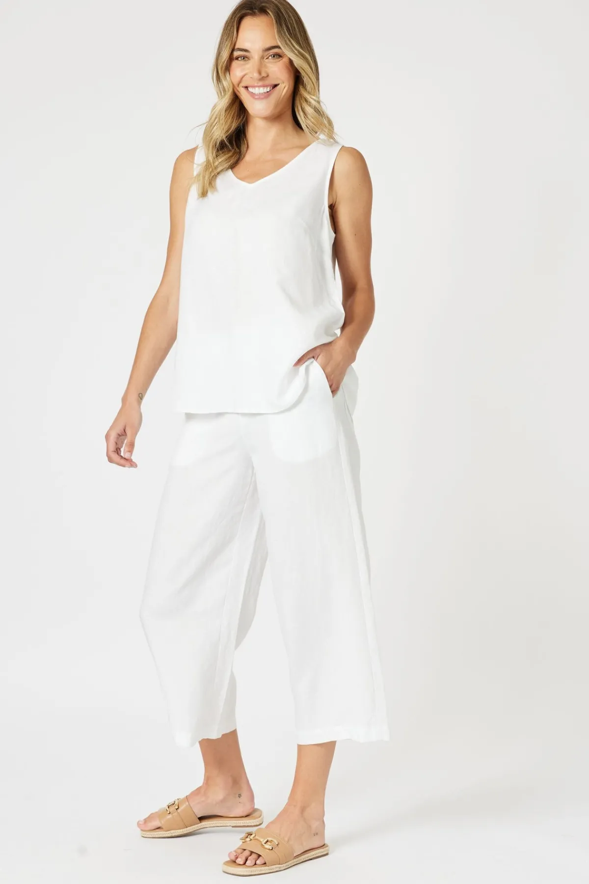 Fresh, flattering, and perfect for warm weather, the Lino Button Back Cami is a summer staple you’ll reach for on repeat.Made from a soft linen-blend, this sleeveless top features a soft V-neckline.Designed to skim the body without feeling too loose, it offers an easy, put-together look