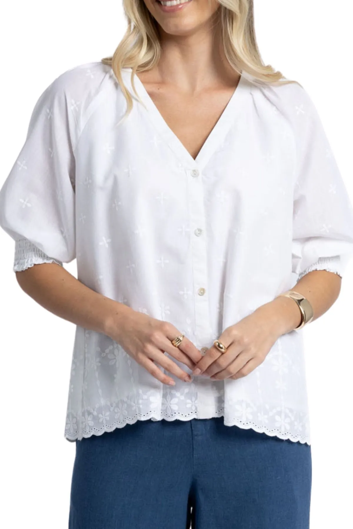 The Chloe Blouse is pretty and flattering. It offers a light, a breezy feel with its soft sheer, cool cotton and elegant embroidered finish – making it perfect for warmer days.