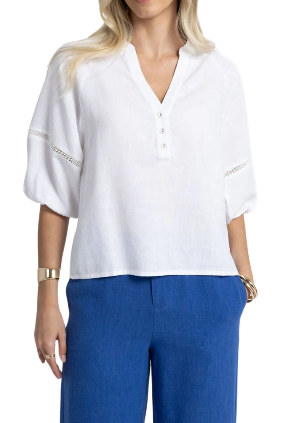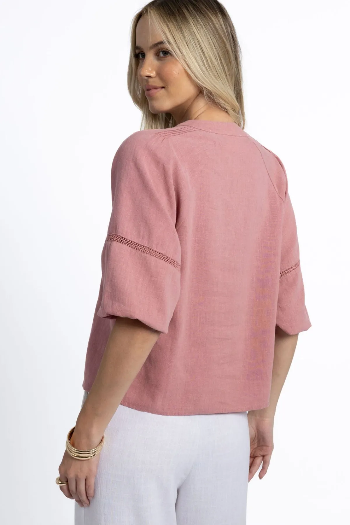 Crafted from a breathable linen blend, featuring ramie cotton and tencel (an eco-friendly yarn) the Nixie Blouse carries subtle details that elevate her flattering shape.