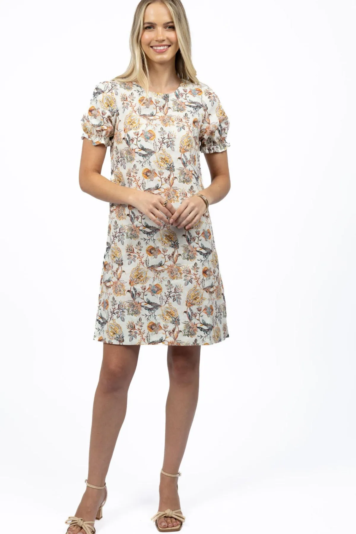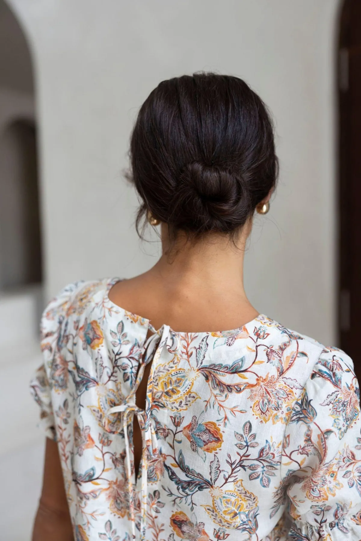A simple go-to dress perfect for everyday – work or play. Crafted from a breathable linen & cotton ramie blend, this style is perfect for summer days. The real feature of this piece is the sweet, slightly puffed sleeves – secured with super soft fine elastic making them very comfortable and easy fitting to all arm sizes. The slight shoulder gathers and the ribbon tie at the back neck offer the perfect finishing touches.