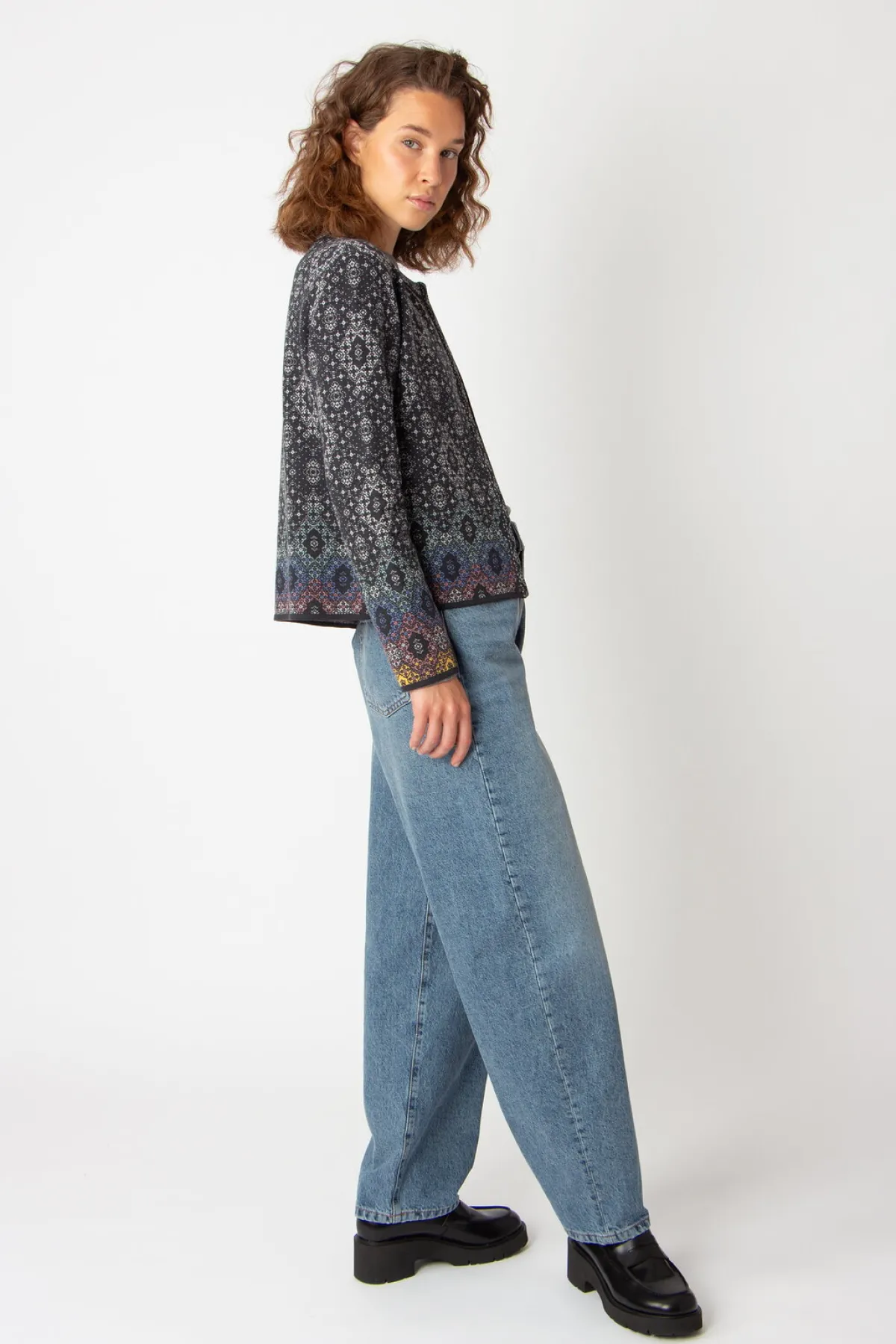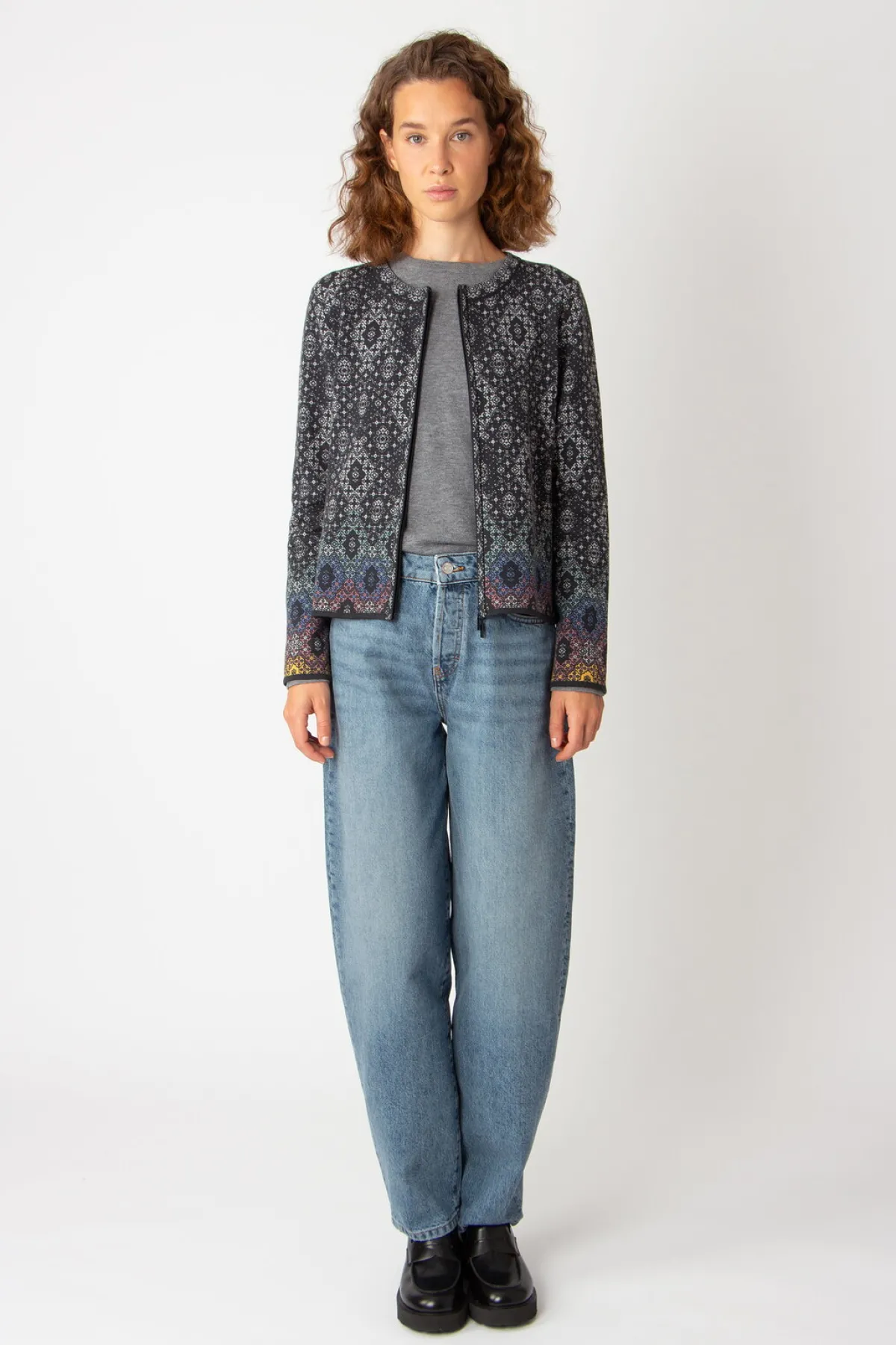Cardigan crafted from 100% wool, featuring a round neckline, standard fit, front zipper, and an ornament pattern.