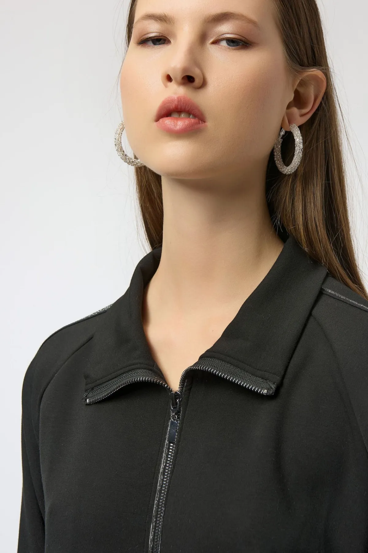 - Trim with metallic fibres at sleeves and zipper