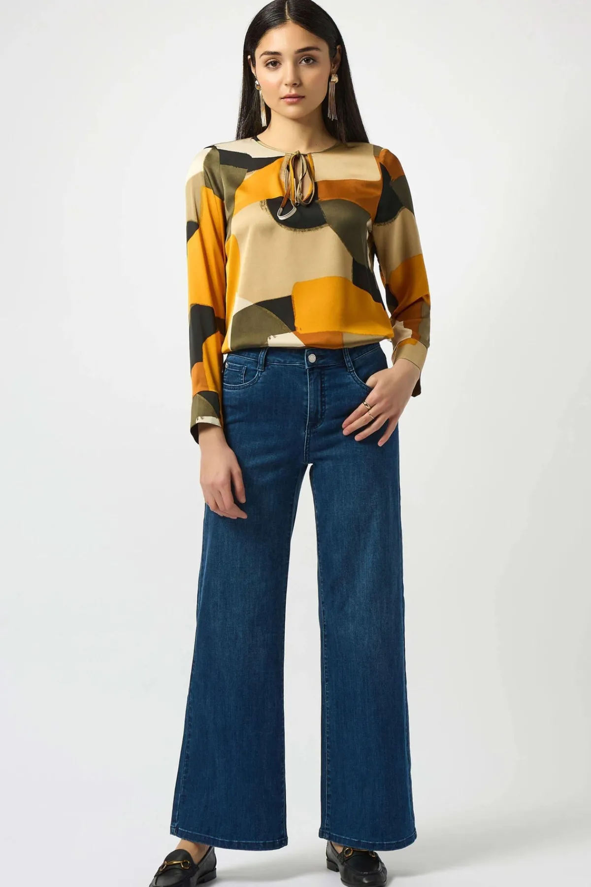 The GOLDIE classic wide-leg denim pants are anything but low-key. Crafted from a lightweight modal blend, super soft, stretchy Joseph Ribkoff FEATHERWEAVE denim, that hugs your curves in all the right ways, you’ll be owning this iconic 70’s starlet style as well as relishing their perfect comfort.