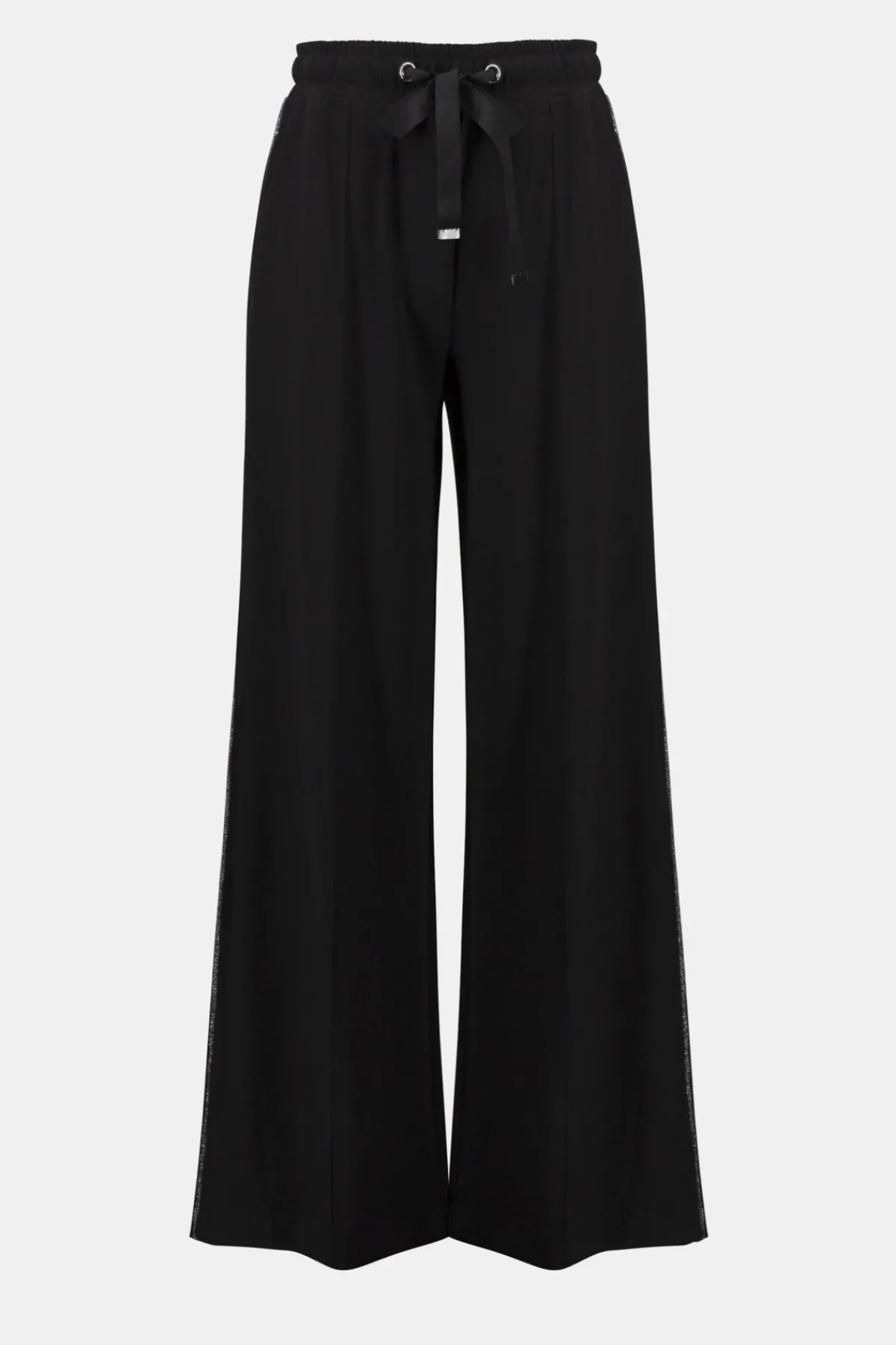 With a flattering wide leg fit, an elastic waistband with a drawcord, and subtle metallic trim, these comfy pants blend casual style with a touch of luxury. Crafted from lightweight scuba knit for a soft, elevated feel, they’re perfect for weekend relaxation.