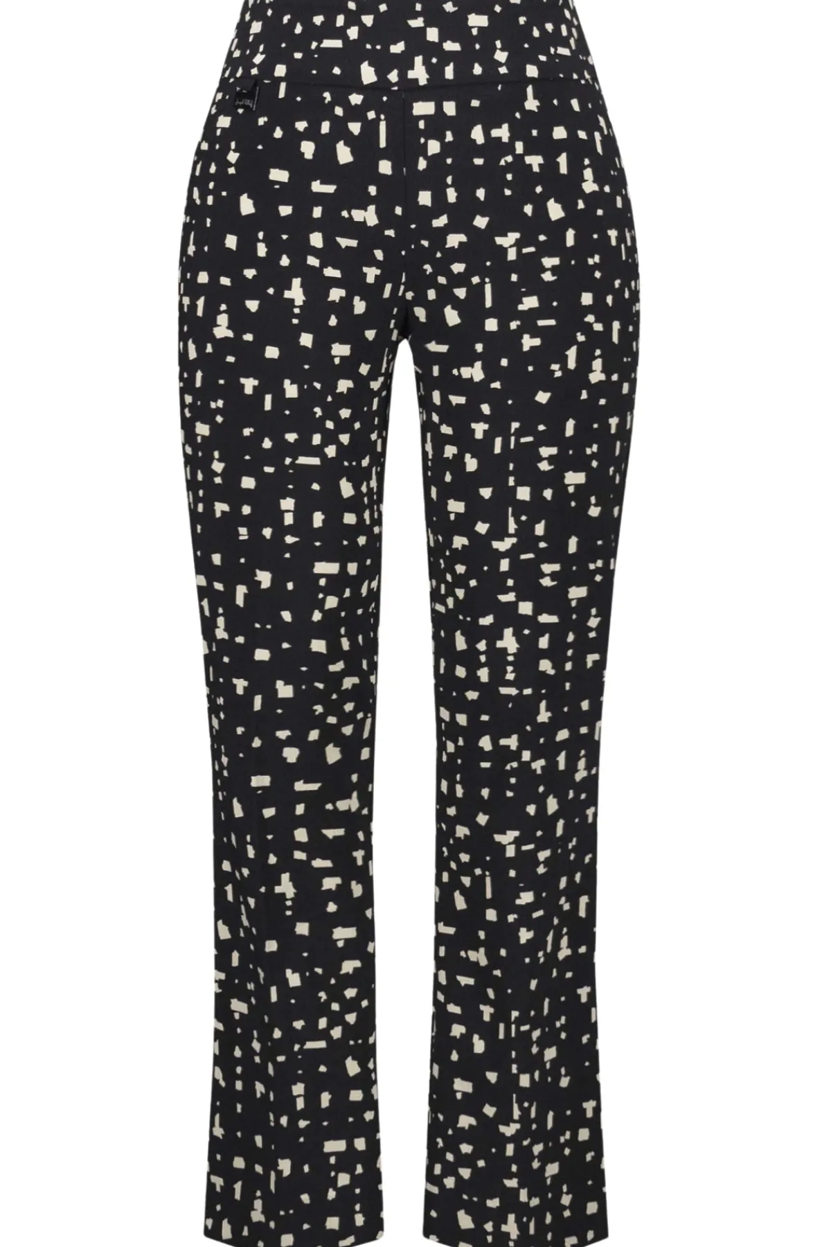 These Millennium pull-on pants showcase a sleek straight silhouette adorned with an eye-catching abstract print. The structured contour waistband, highlighted by a refined JR ornament, adds a touch of polished detail. Side slits at the hem enhance the design, creating a chic and contemporary finish.