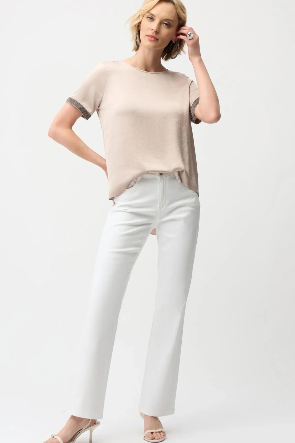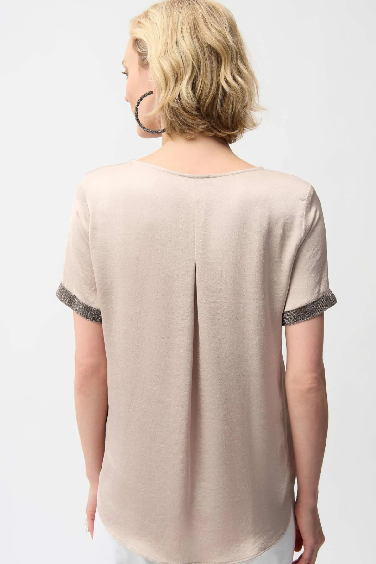Effortlessly refined, this hammered recycled satin top catches the light with subtle texture. A Rhinestones band on the short sleeves adds just the right amount of sparkle, while a back pleat keeps the silhouette soft and fluid.