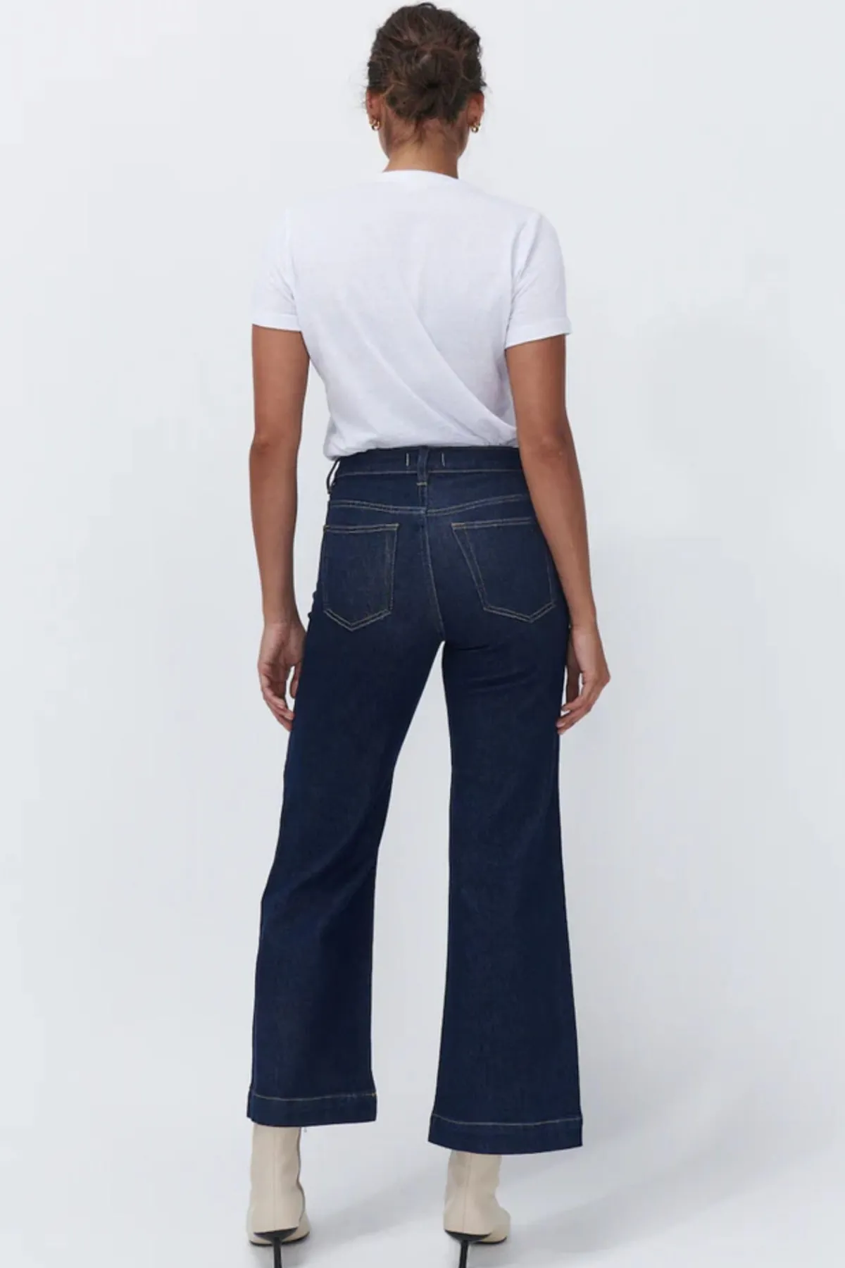 Channel chic 70’s style. A modern twist on the classic wide-legged jean, the Freya features a mid/high rise that’s fitted at the hips with a relaxed, wide leg that flares at the knee. Works so well with a cotton tee and a pair of boots or sandals.