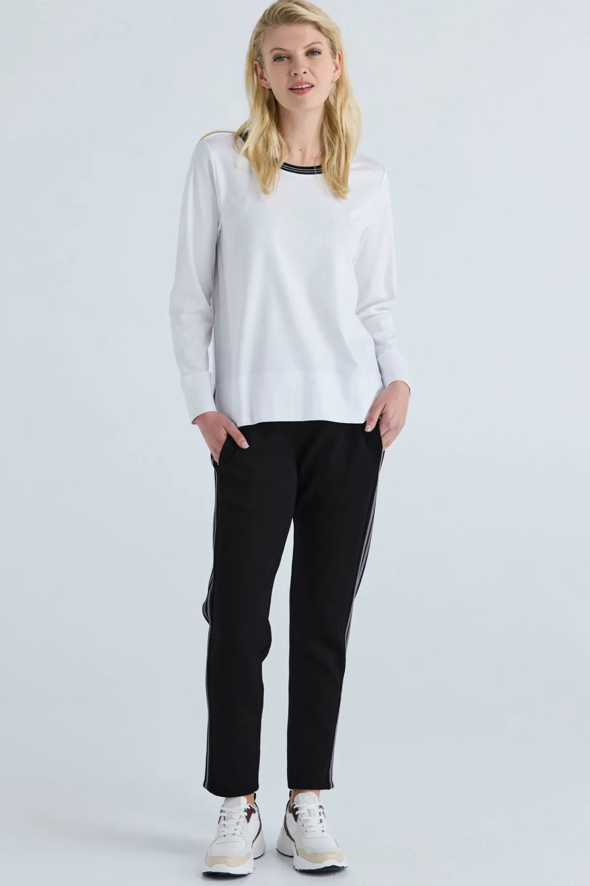 Designed for comfort, the Monty Top is a relaxed-fit cotton long sleeve top with sporty black and white striped tape at the neckline. This piece effortlessly combines style and ease for a laid-back look.