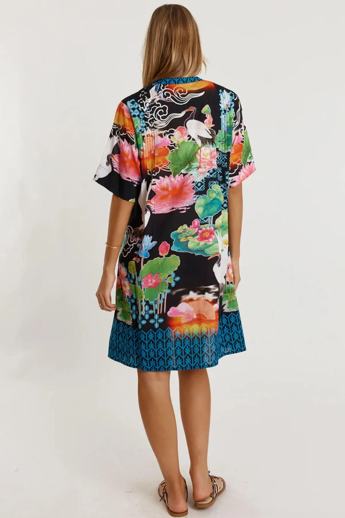 Flowing with effortless charm, the Lula Life Akiko Button Dress is an easy go-to for colourful, everyday style. Made from 100% viscose, it feels soft, cool, and lightweight—perfect for warm days. The Nauru collar with a V-neck, front tab button-through design, and vertical tucks on the front and back bodice create a relaxed yet polished look. With elbow-length sleeves, practical side pockets, and a soft curved hem, it’s finished in a striking Japanese-inspired digital print that adds a fresh, artistic touch. Proudly designed in Australia, it’s ideal for weekends, outings, or effortless daytime dressing.