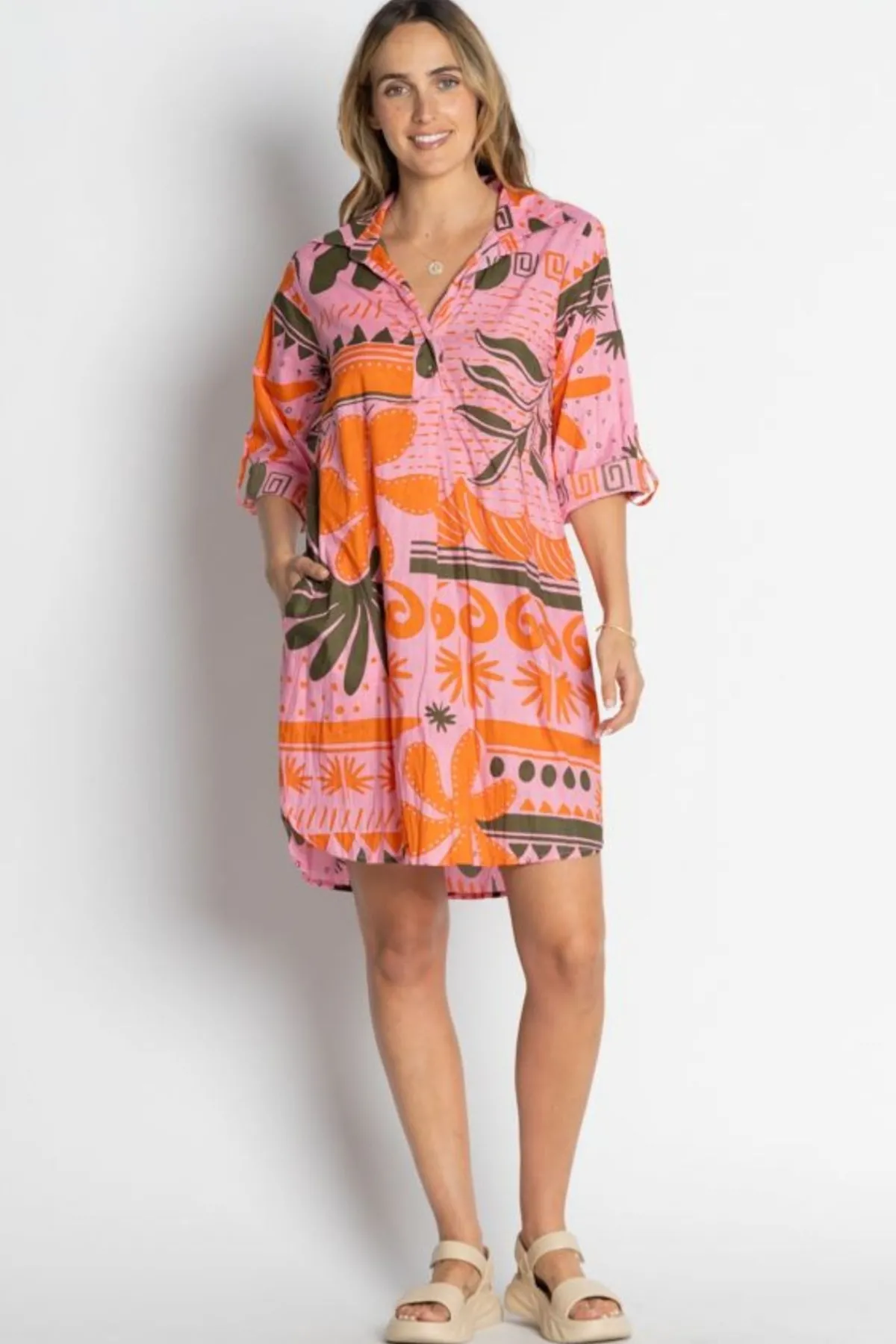 Breeze through summer with the Godiva Shirtmaker, your perfect go-to for sunny days. Wear it solo for beachside fun or open over a top and pants for a laid-back, stylish vibe. Light, breezy, and effortlessly cool, this shirt dress keeps you comfortable while turning heads wherever you go.