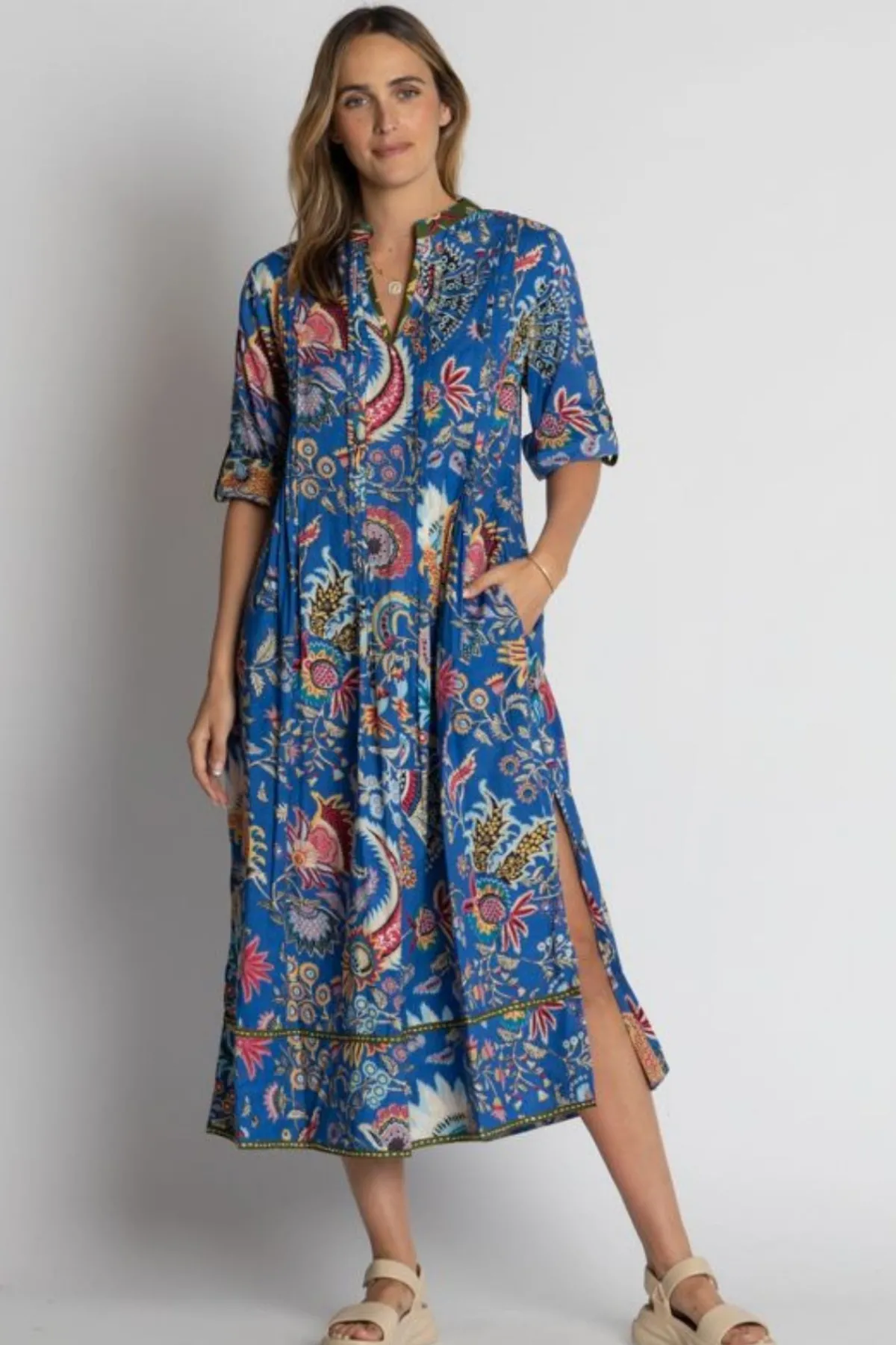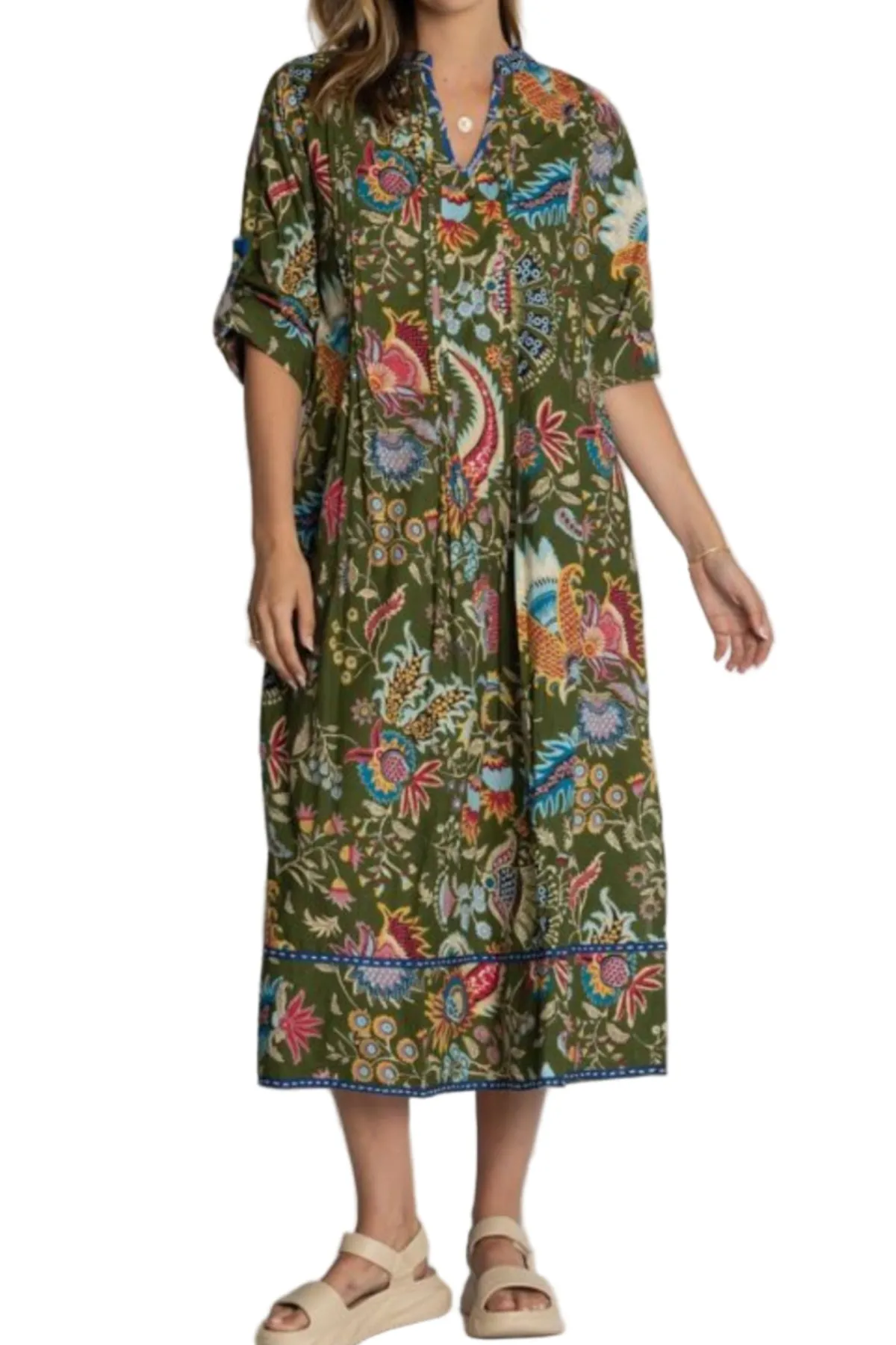 The Nandita Cotton Midi Dress from Lula Life is just perfect for tropical getaways and relaxed days. The gentle A-line silhouette, soft breathable cotton, V cut-out at the neckline and elbow length sleeves with button tab adjustment features will have you feeling comfortable all day.