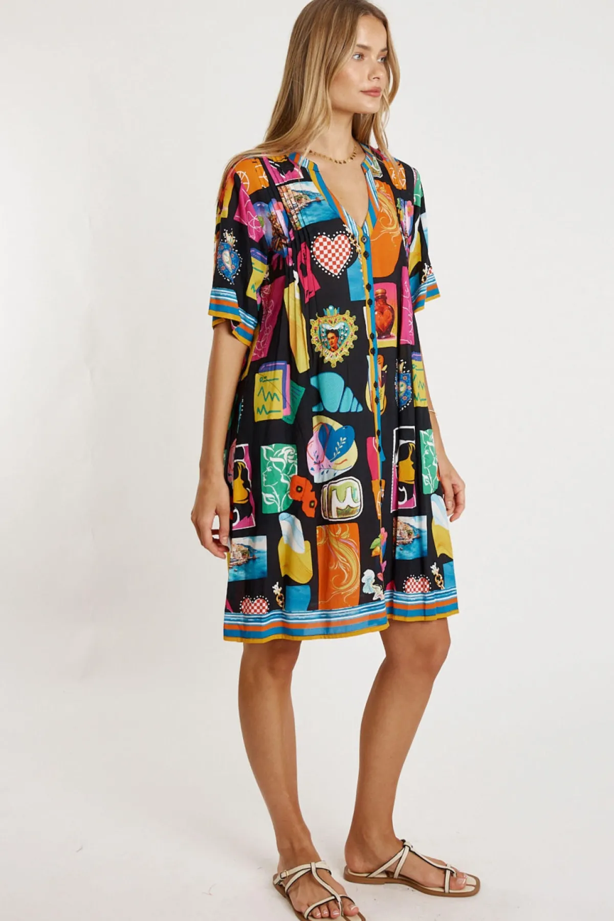 Fresh, flowy, and full of personality, the Lula Life Odette Tuck Dress is an easy everyday favourite with beautiful detail. Made from 100% viscose, it feels soft, lightweight, and perfect for warm days. The Nauru collar flowing into a V-neck and front tab button-through design give it a relaxed, polished look. Soft vertical tucks on the front and back bodice add gentle shaping, while the elbow-length sleeves, side pockets, and curved hem keep the fit effortless and comfortable. Finished in a striking Japanese-inspired digital print, this Australian-designed dress—made in India—offers vibrant, wearable style. Model is 5’8½” for reference.