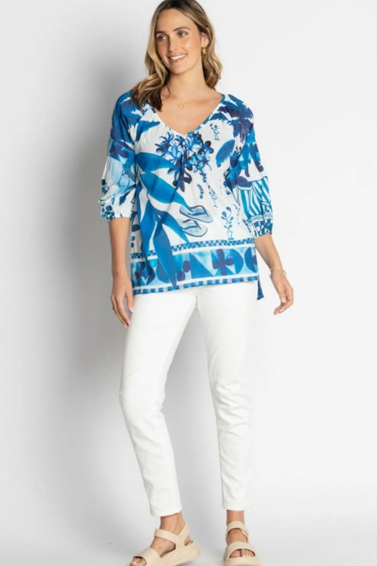 The LulaLife Karasi Top is your go-to summer buddy—light, airy, and made from 100% breathable cotton right here in Australia. It’s got a charming V-neck with gentle gathers and roomy raglan ¾ sleeves with stretchy cuffs for easy, comfy wear. Side splits add a touch of flair, while the bright tropical print keeps things fun and fresh. Mix and match with shorts, skirts, or pants for laid-back days, sunny holidays, or any warm-weather adventure!