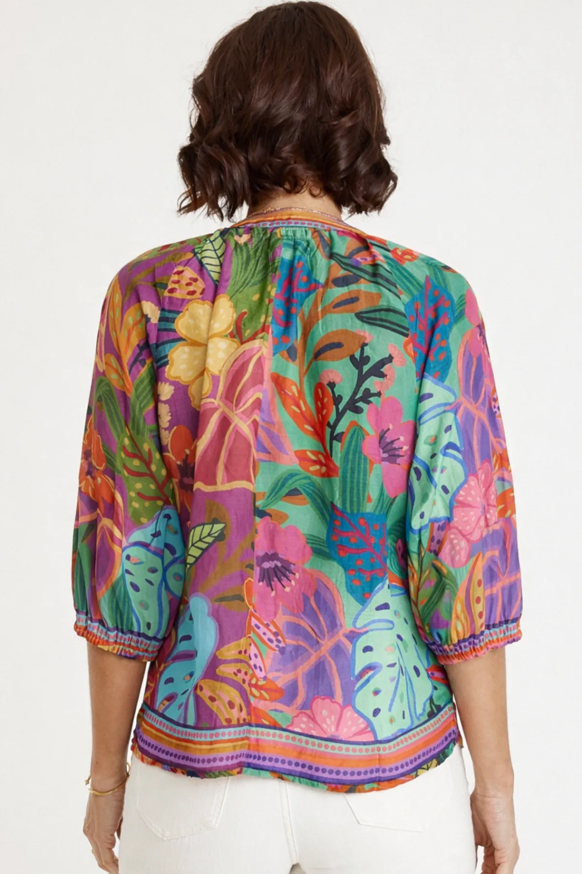 A beautiful mix of colours make this top perfect for pairing with white pants. Designed in Australia and perfect for our weather and lifestyle.